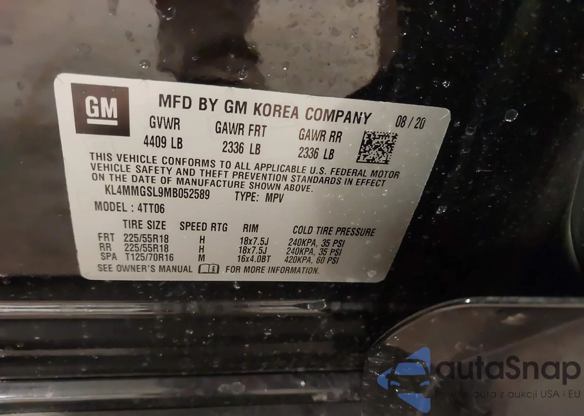 • VIN KL4MMGSL9MB052589