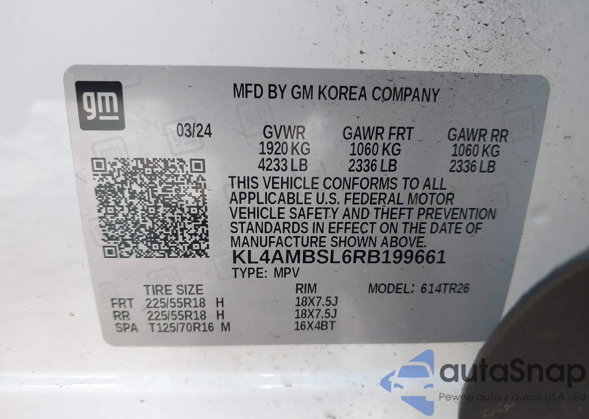 LOT: 43936620 VIN: KL4AMDSL4RB200060