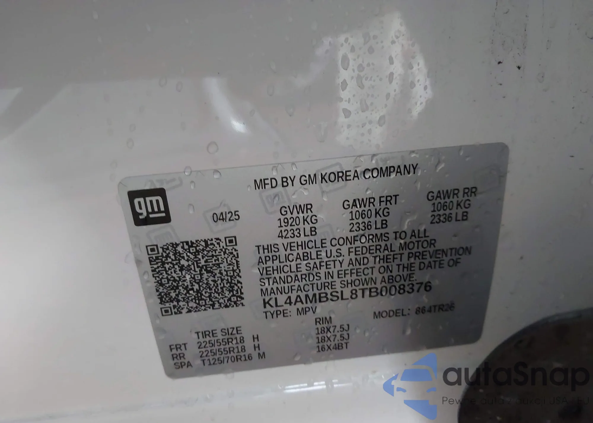 • VIN KL4AMBSL8TB008376