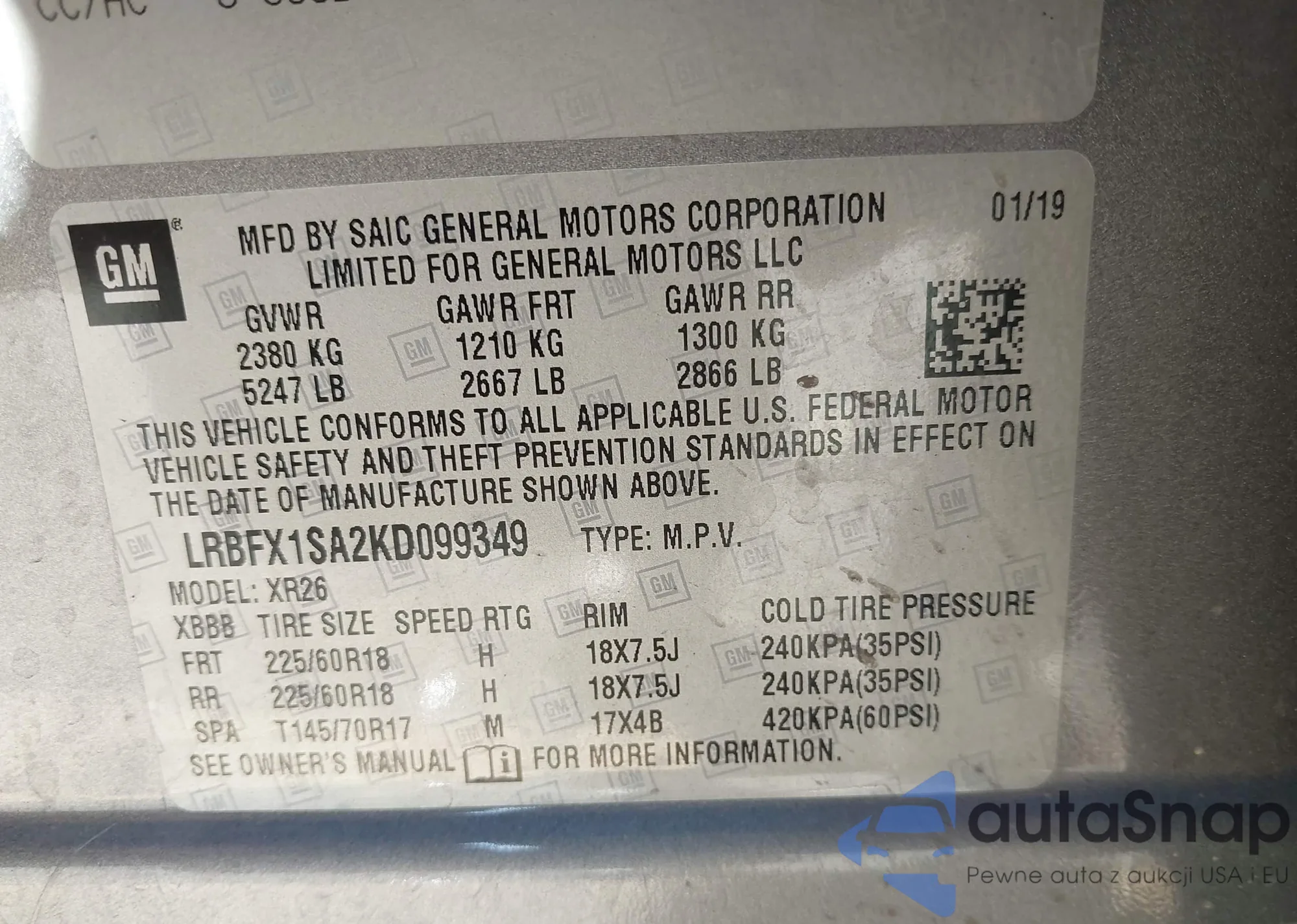 • VIN LRBFX1SA2KD099349