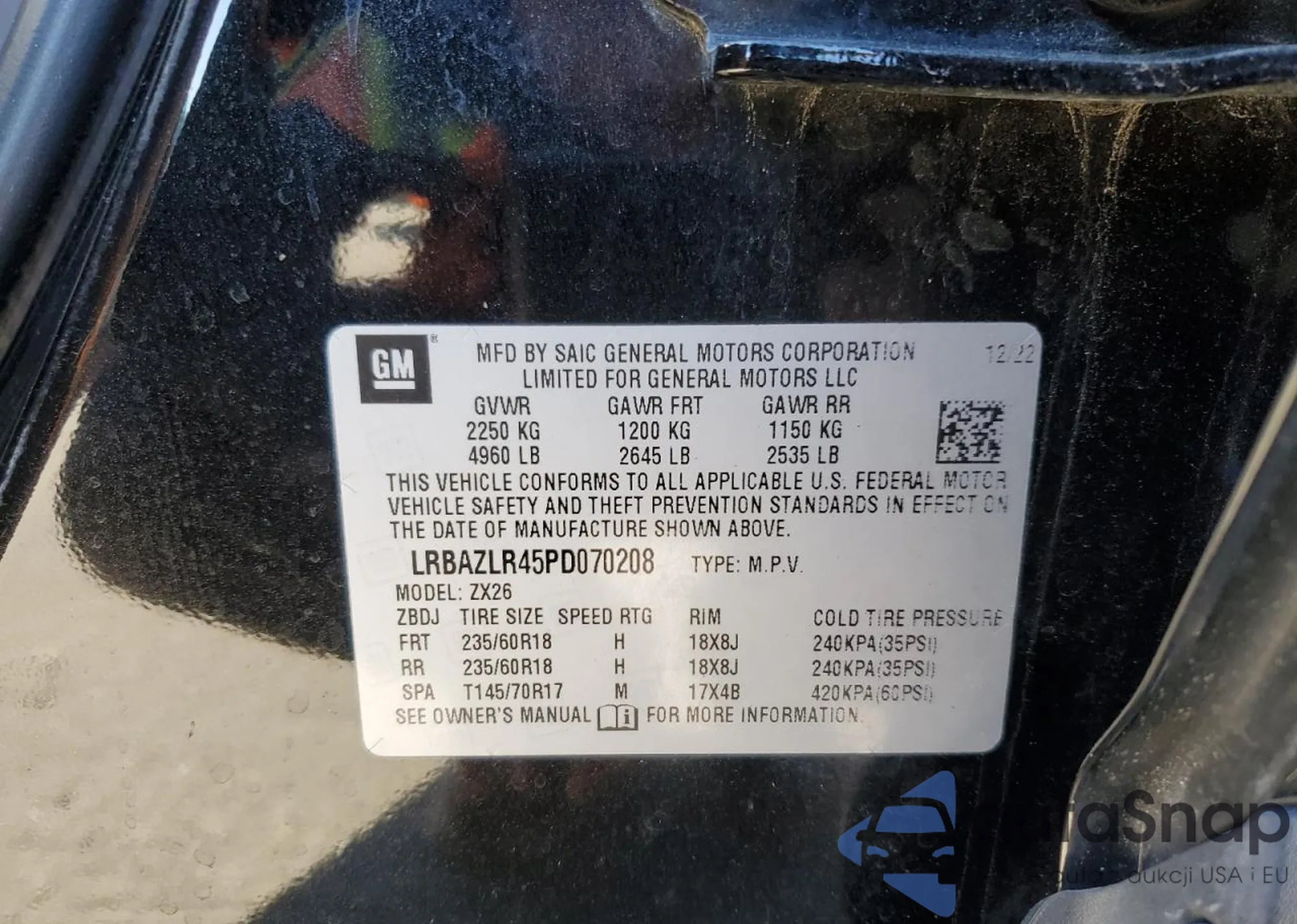 • VIN LRBAZLR45PD070208