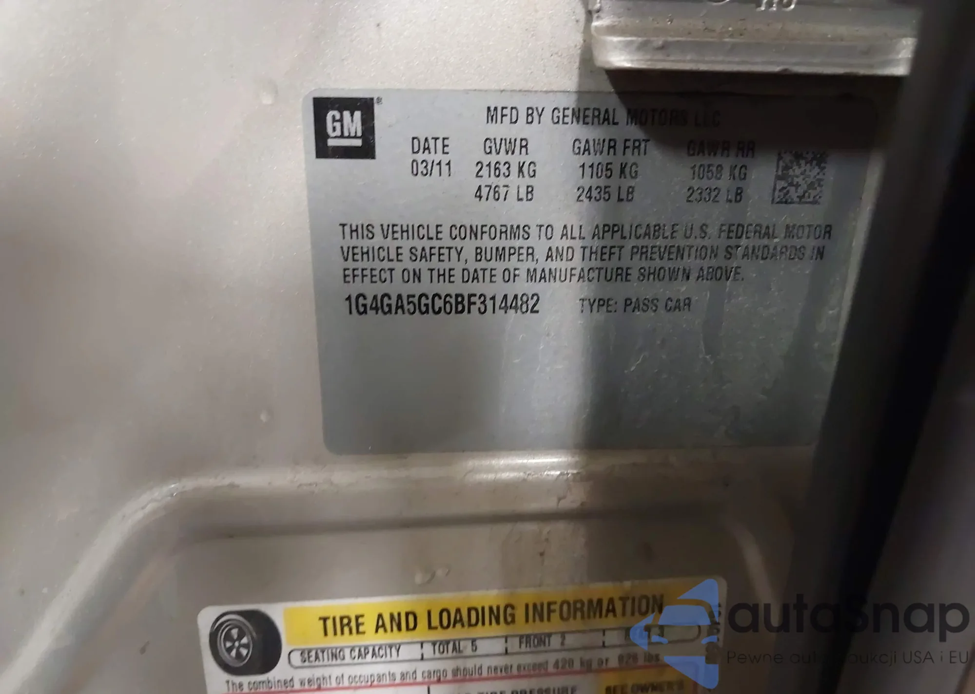 • VIN 1G4GA5GC6BF314482