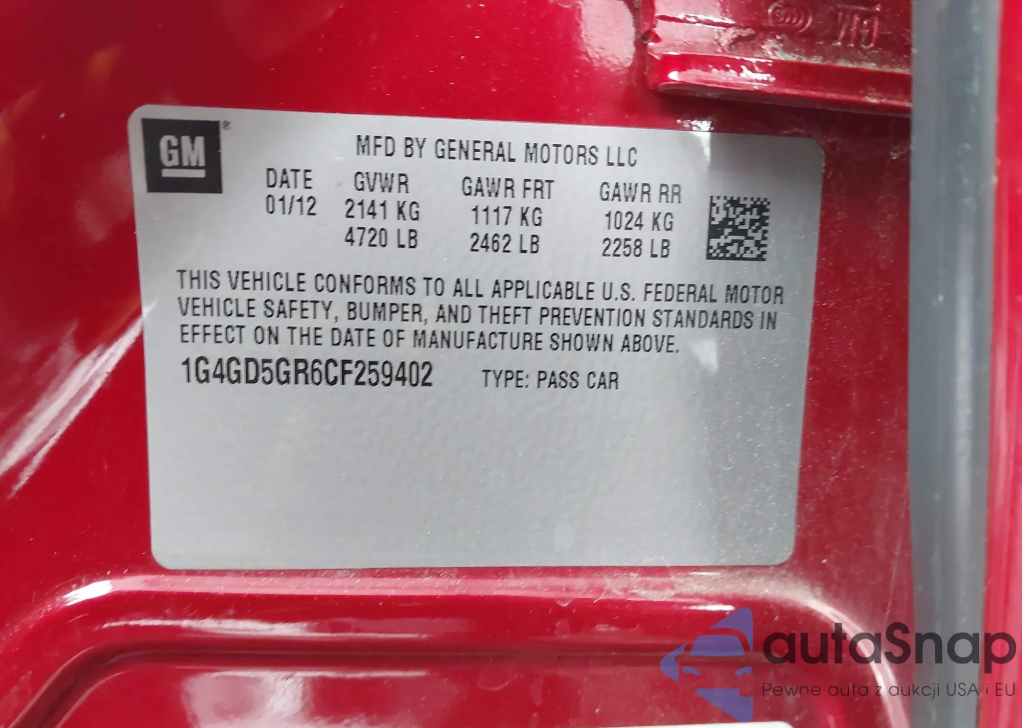 LOT: 44254817 VIN: 1G4GD5GR6CF259402