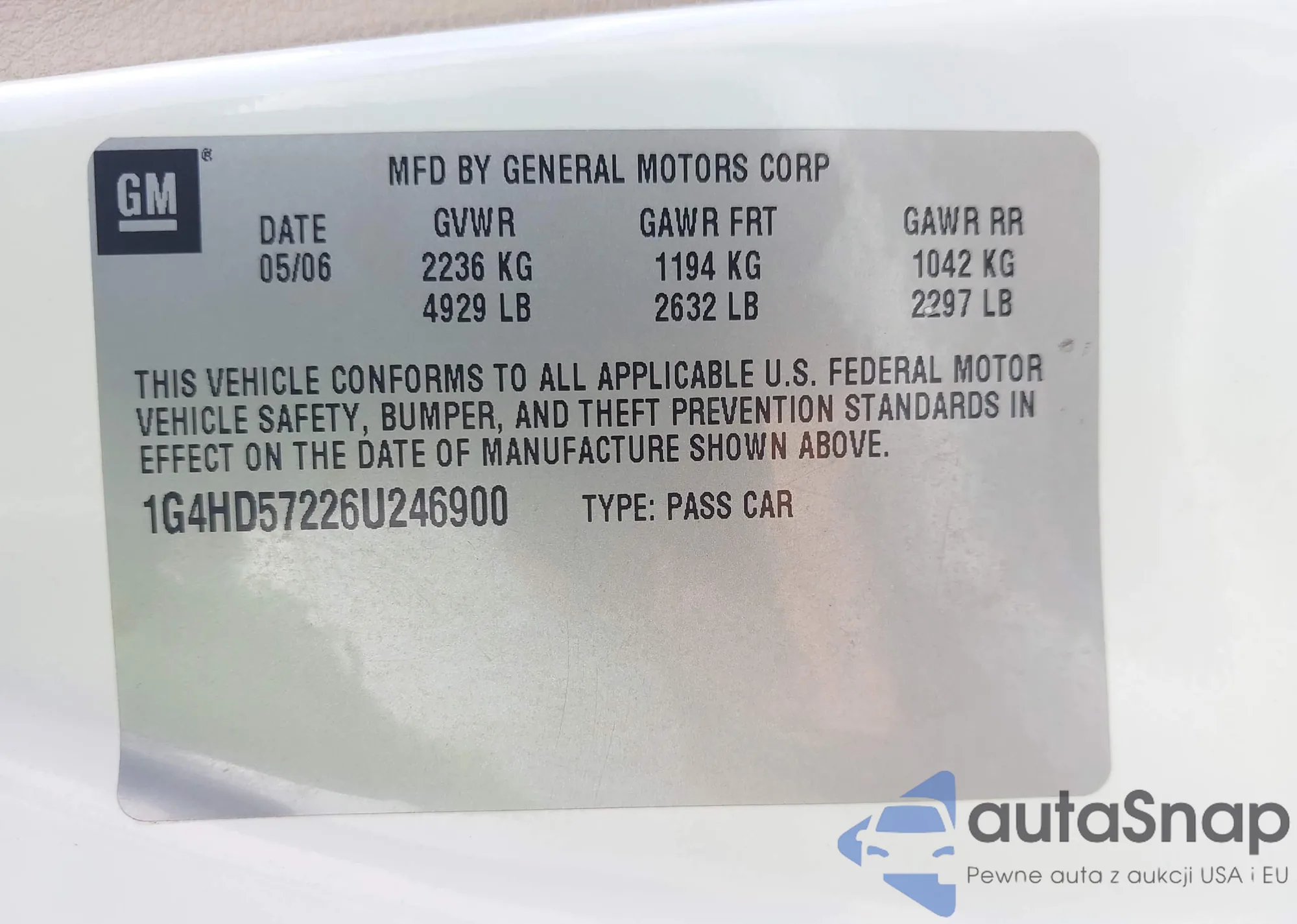 • VIN 1G4HD57226U246900