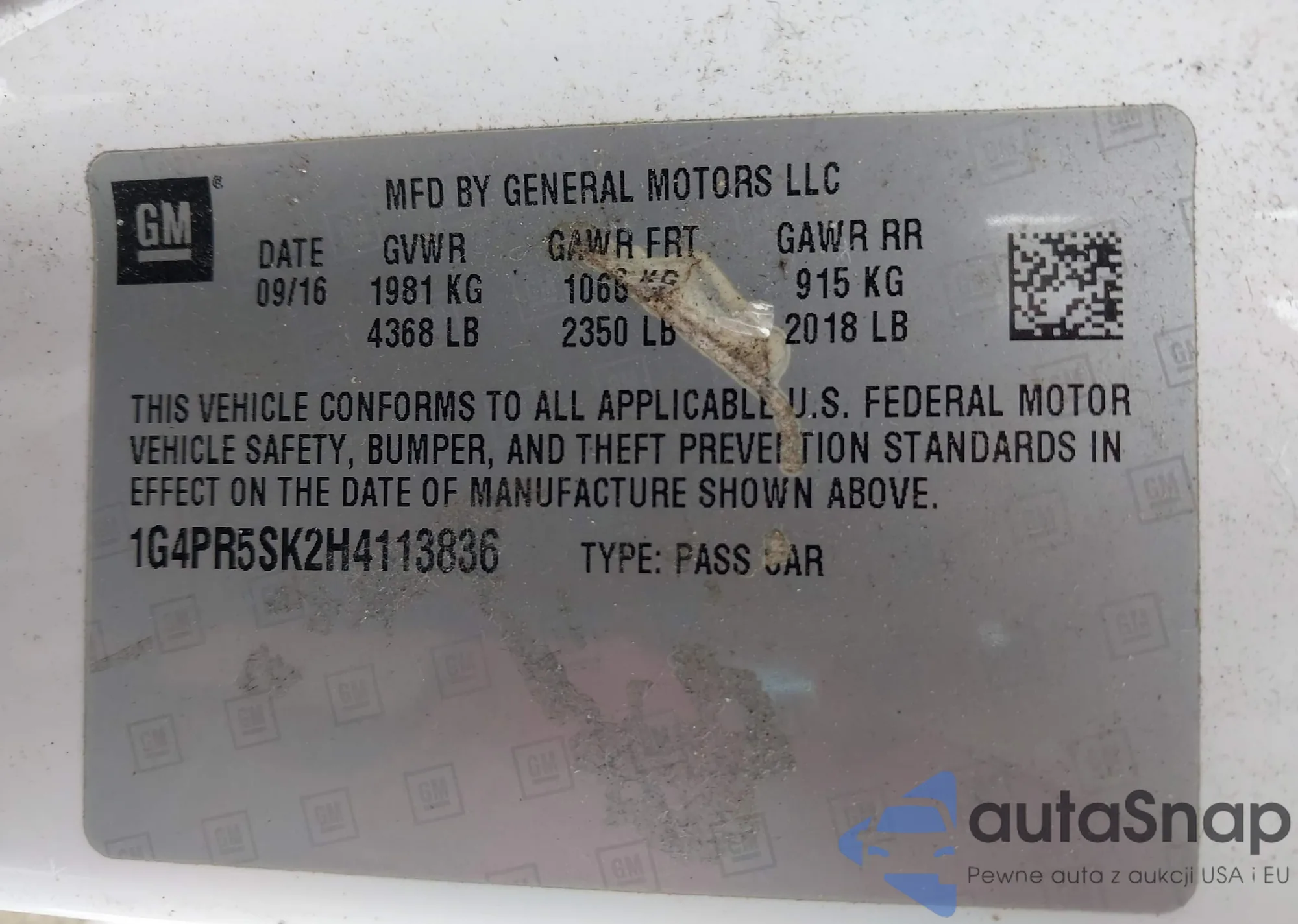 LOT: 44292132 VIN: 1G4PR5SK2H4113836