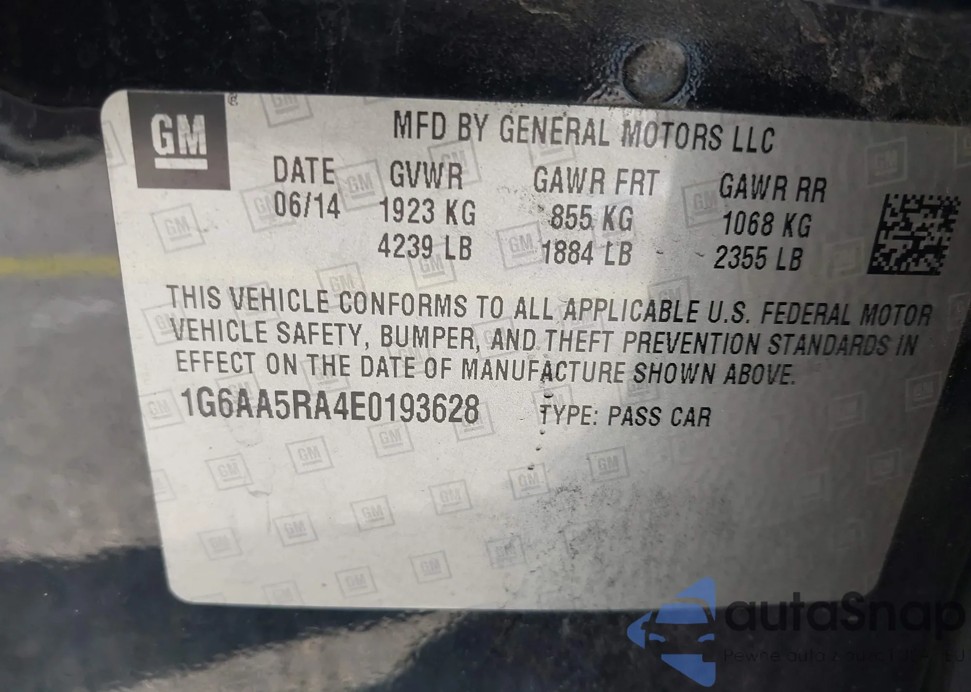 • VIN 1G6AA5RA4E0193628