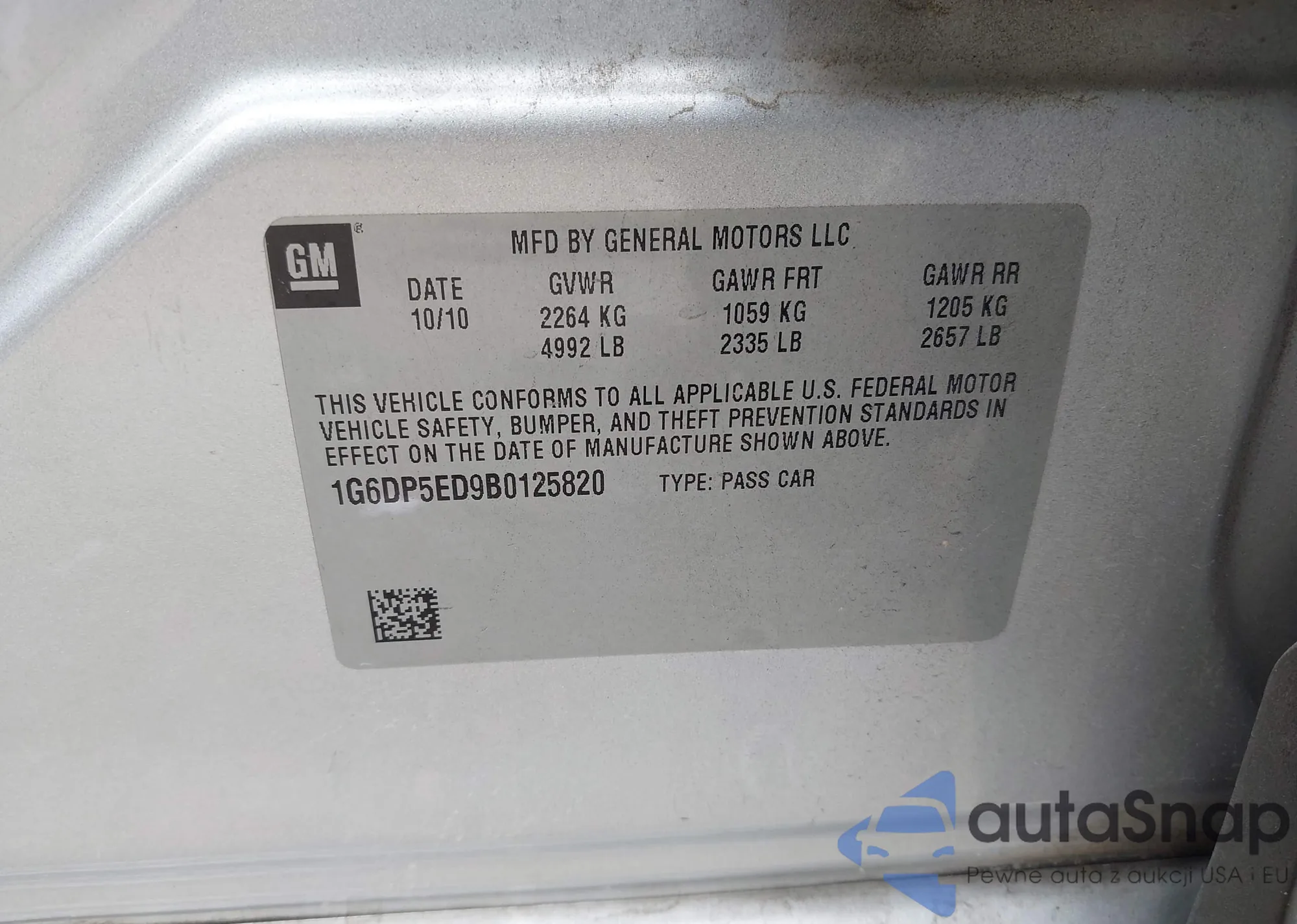 • VIN 1G6DP5ED9B0125820