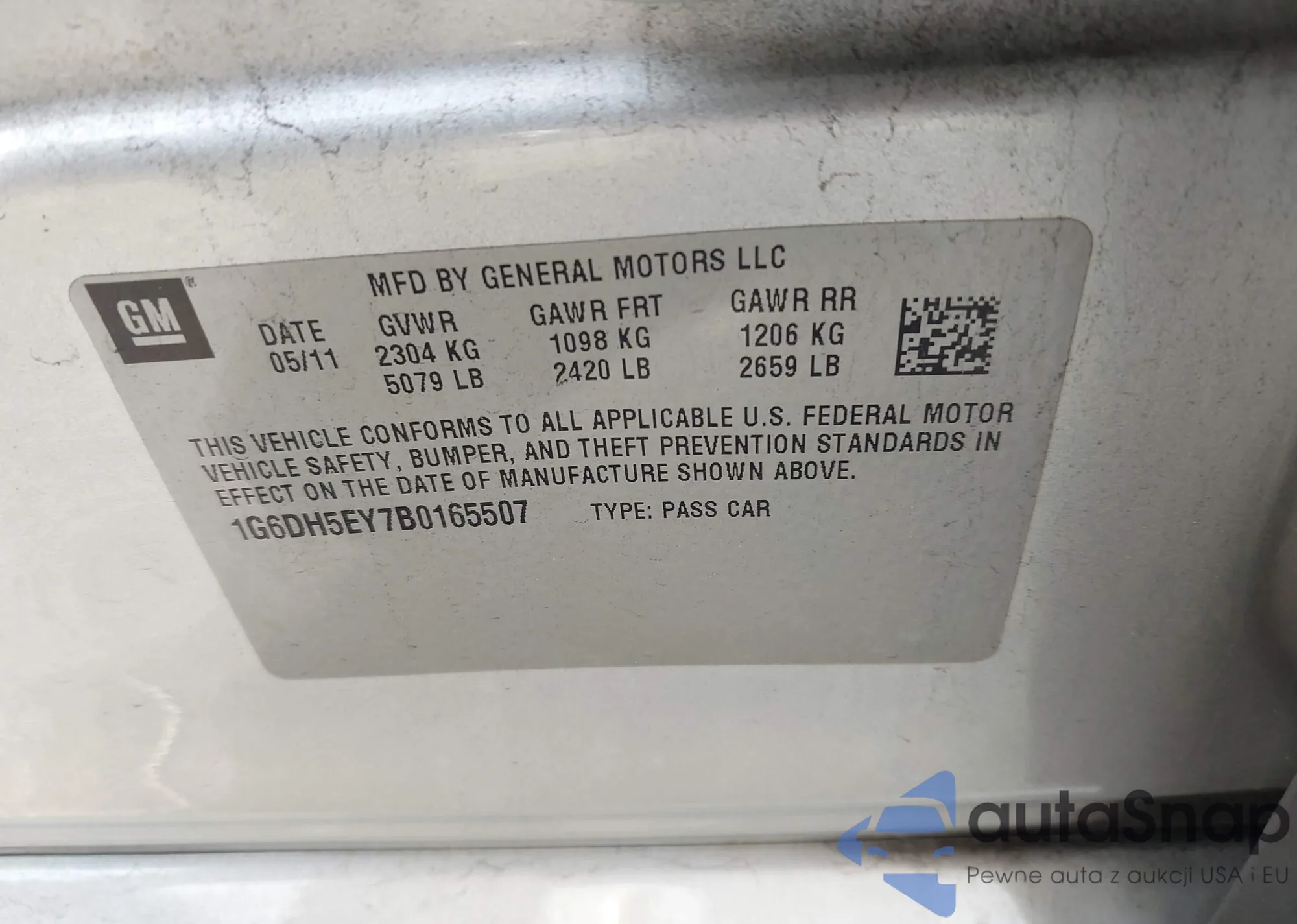 • VIN 1G6DH5EY7B0165507