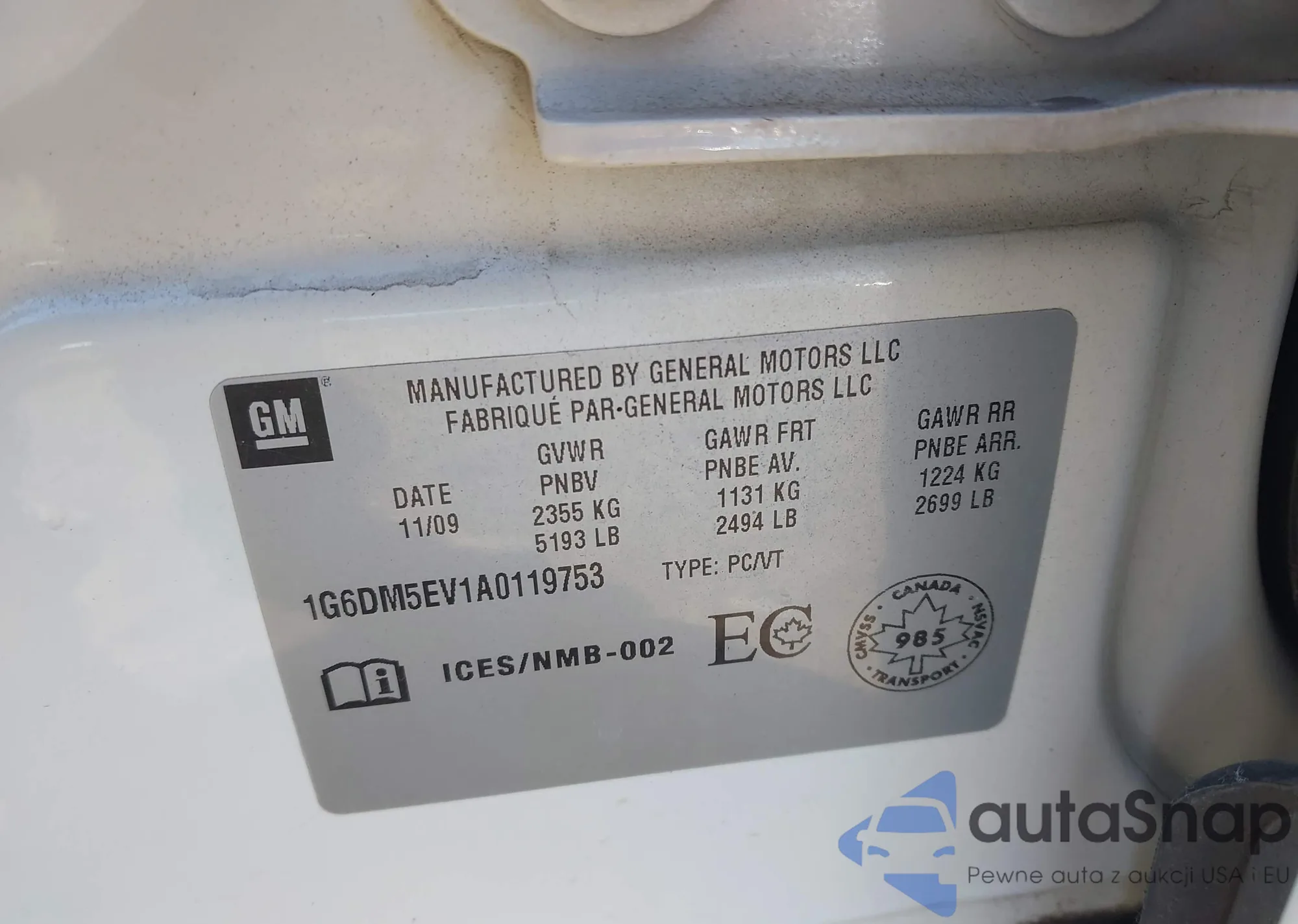 • VIN 1G6DS5EV6A0131371