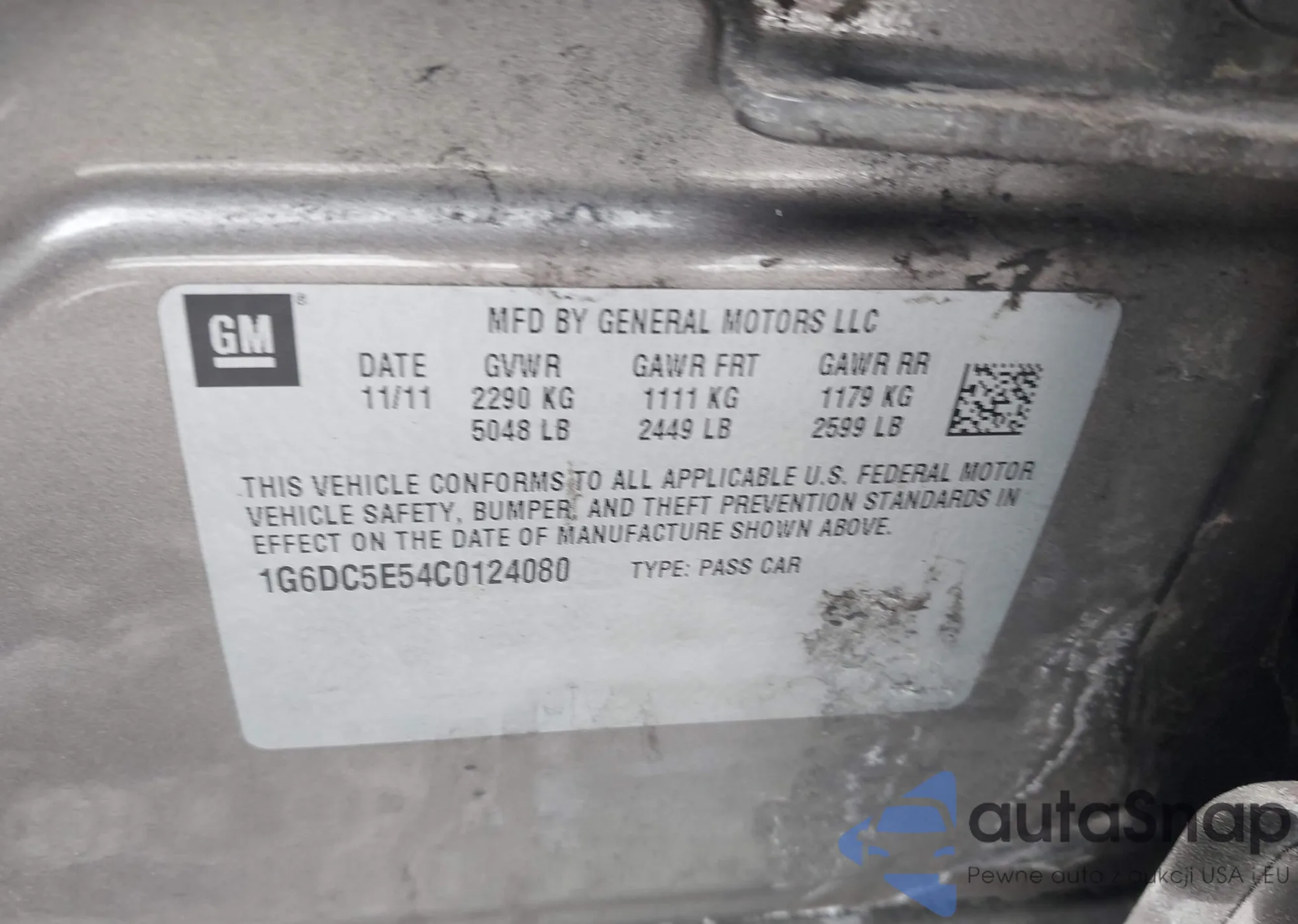 • VIN 1G6DC5E54C0124080