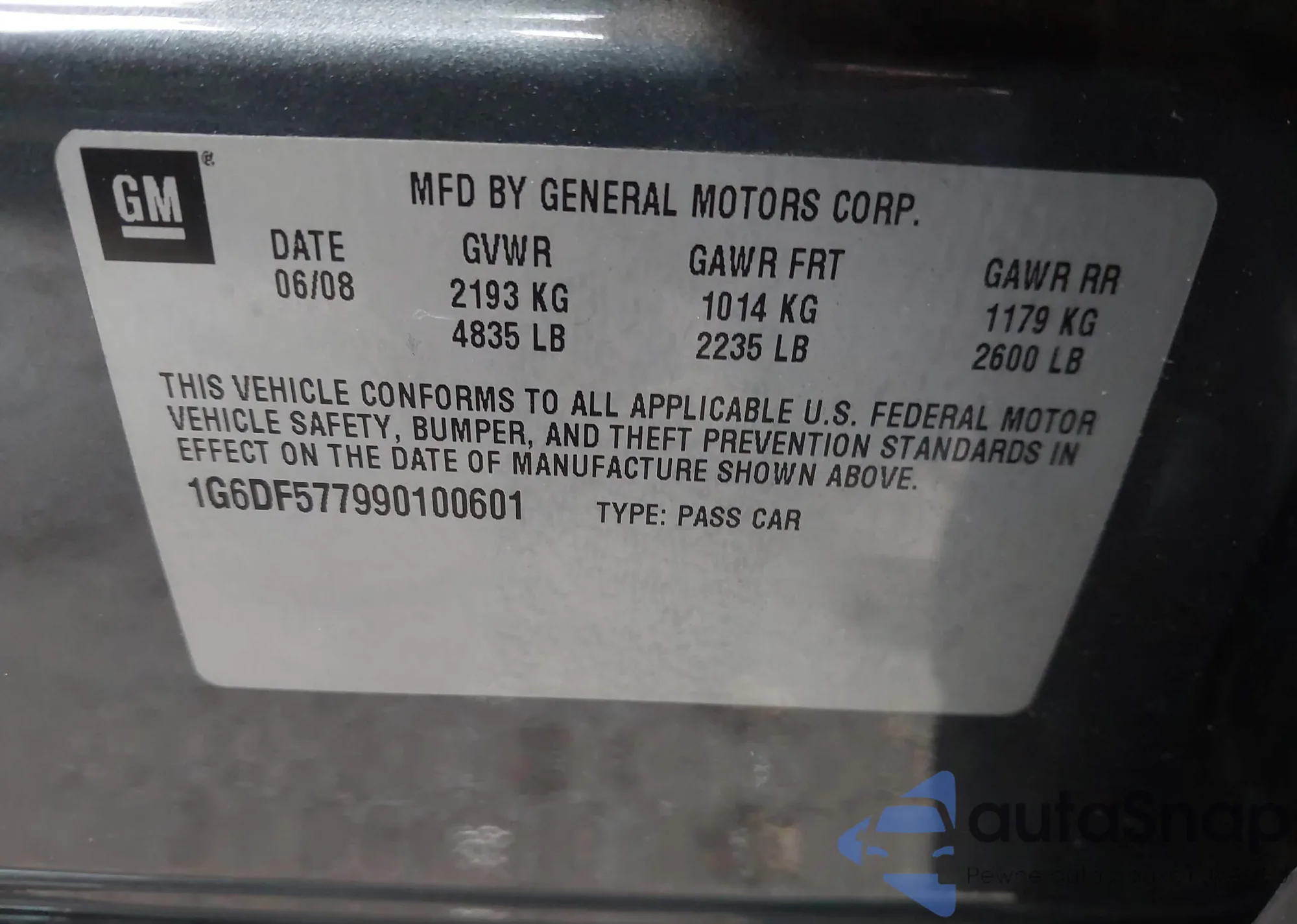 • VIN 1G6DF577990100601