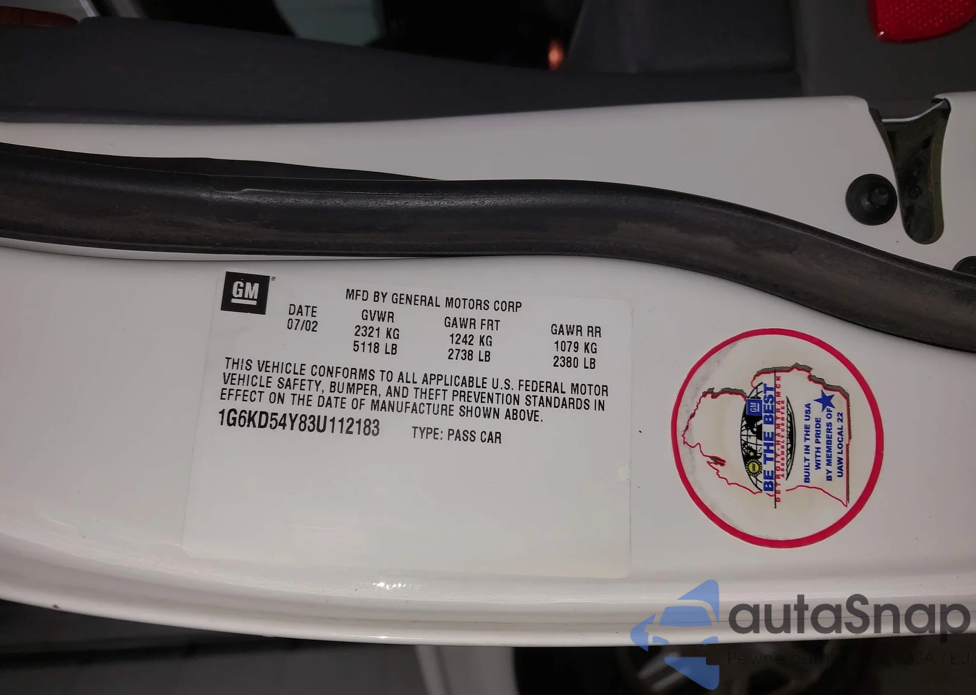 • VIN 1G6KD54Y83U112183