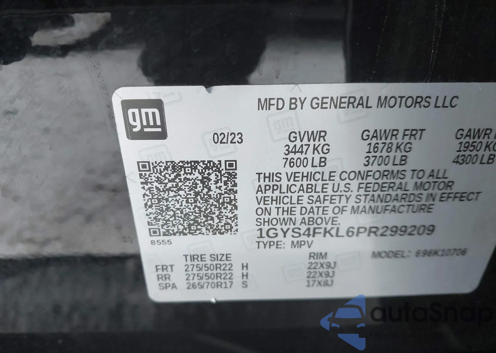 • VIN 1GYS4FKL6PR299209