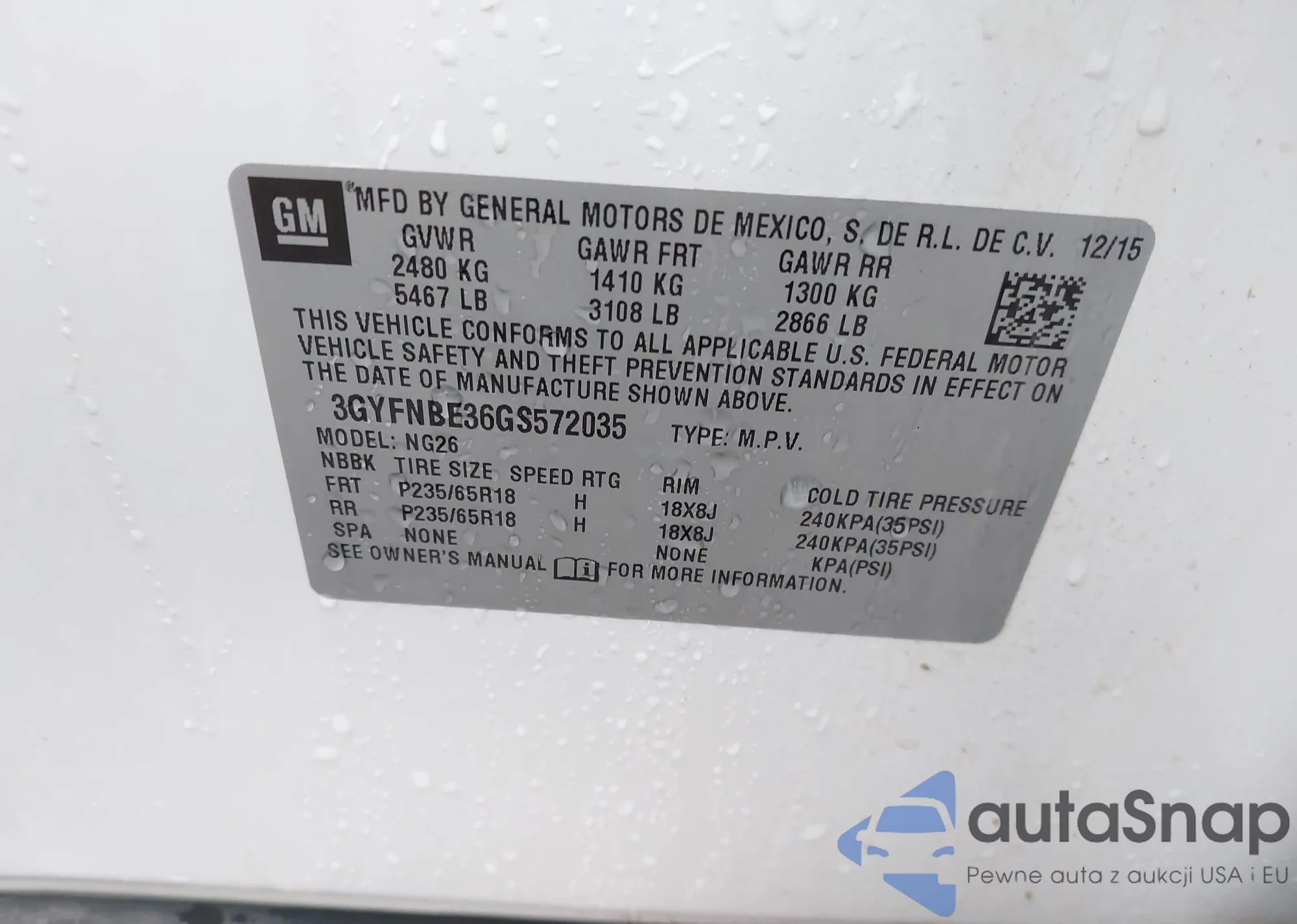 LOT: 43768298 VIN: 3GYFNBE36GS572035