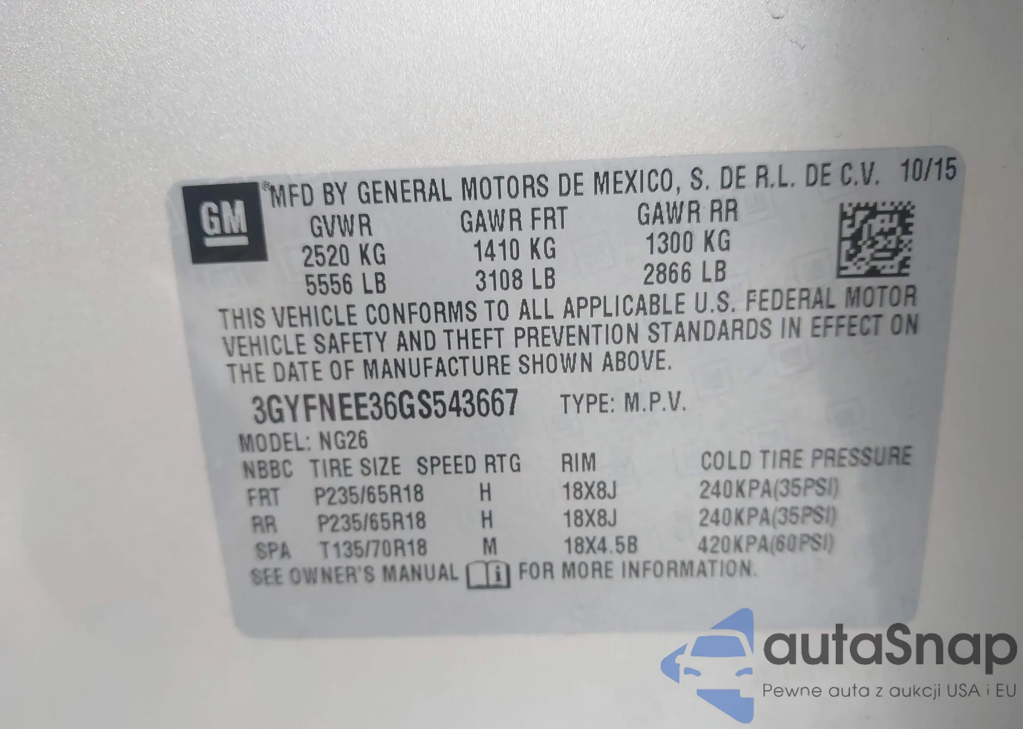 • VIN 3GYFNBE36FS541799