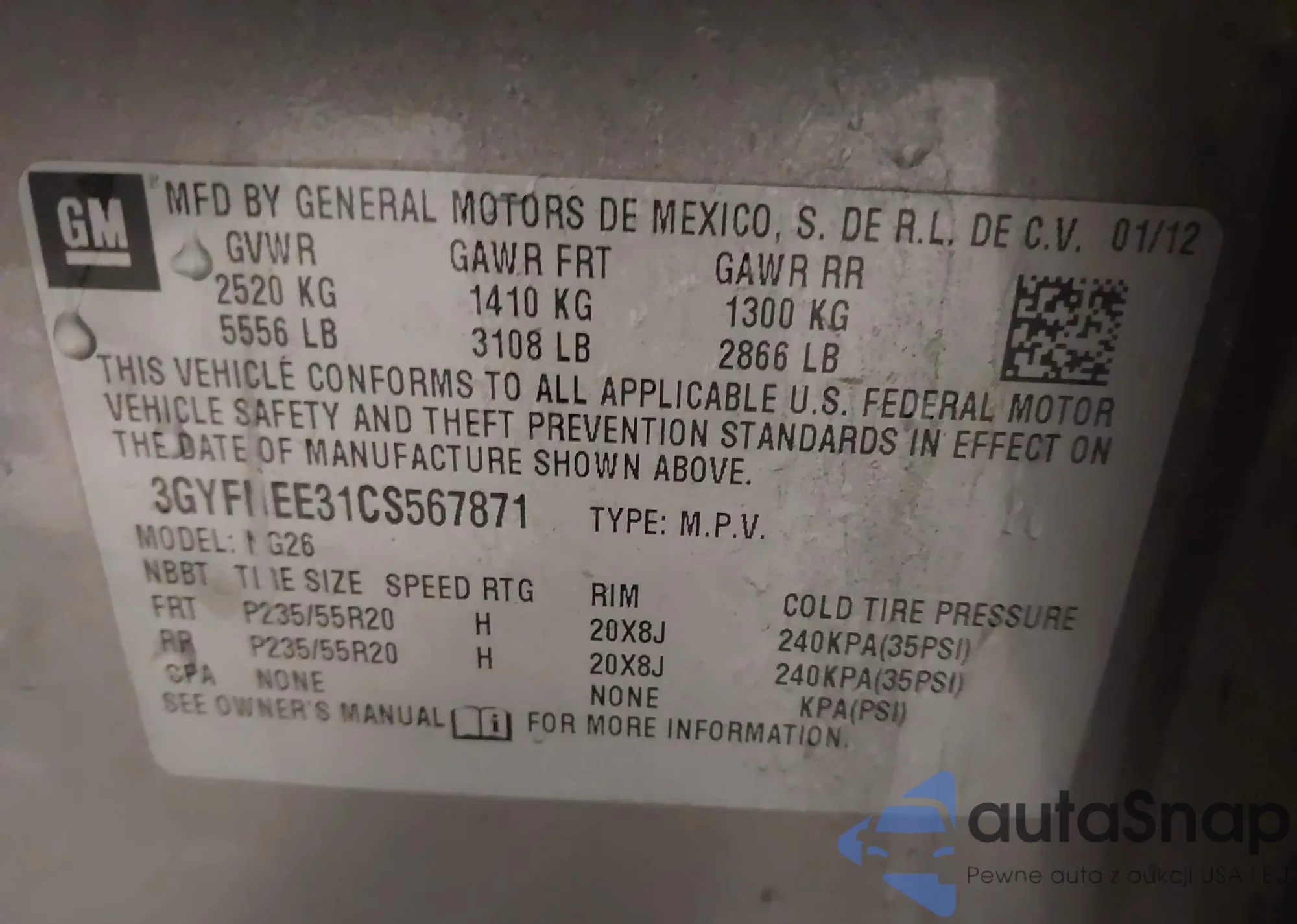 • VIN 3GYFNEE31CS567871