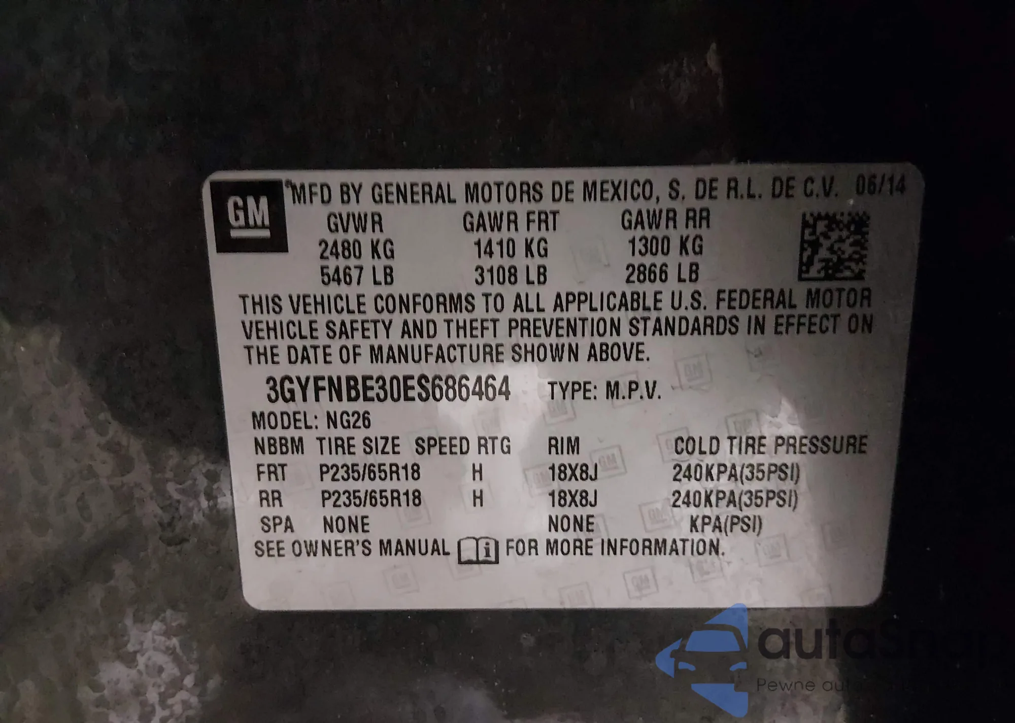 • VIN 3GYFNBE30ES686464