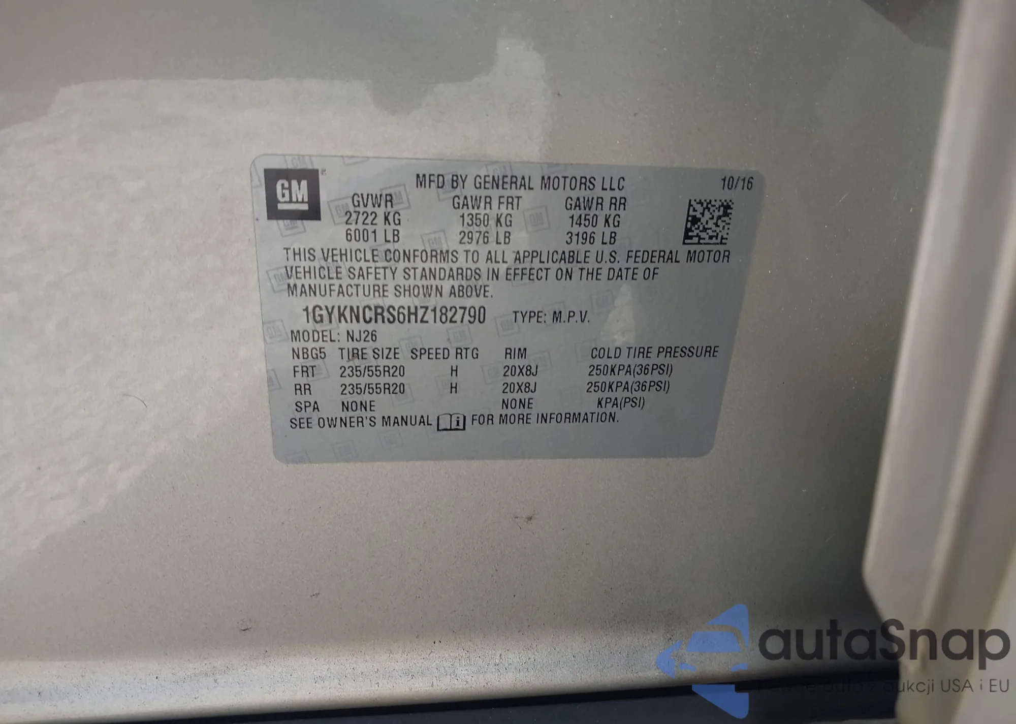 LOT: 44224441 VIN: 1GYKNCRS6HZ182790