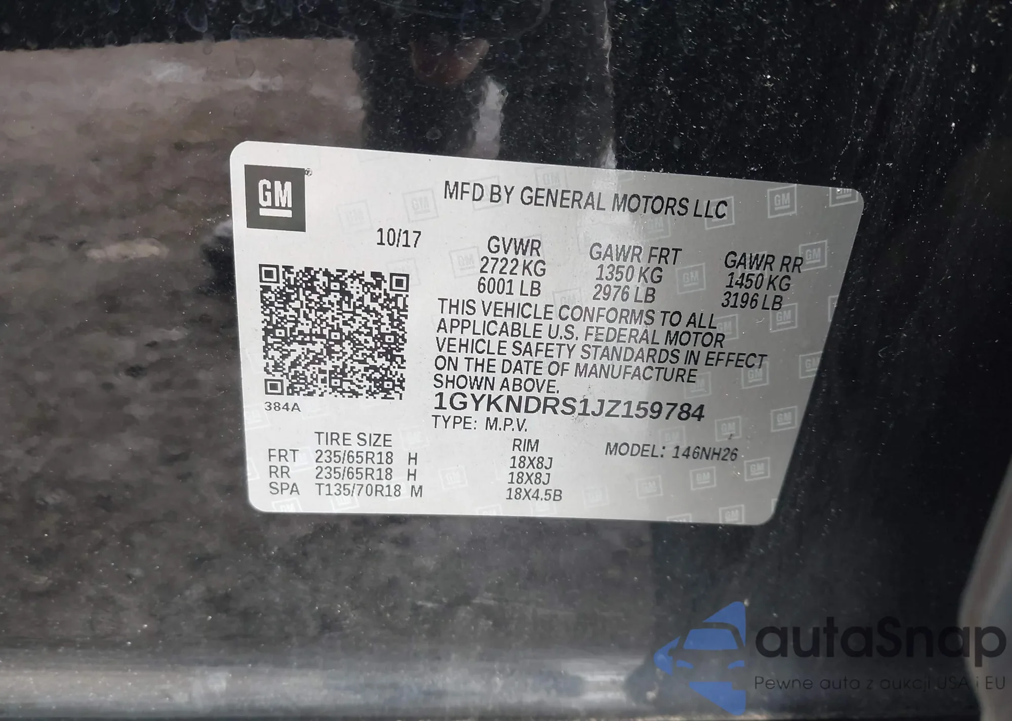 LOT: 44327538 VIN: 1GYKNDRS1JZ159784