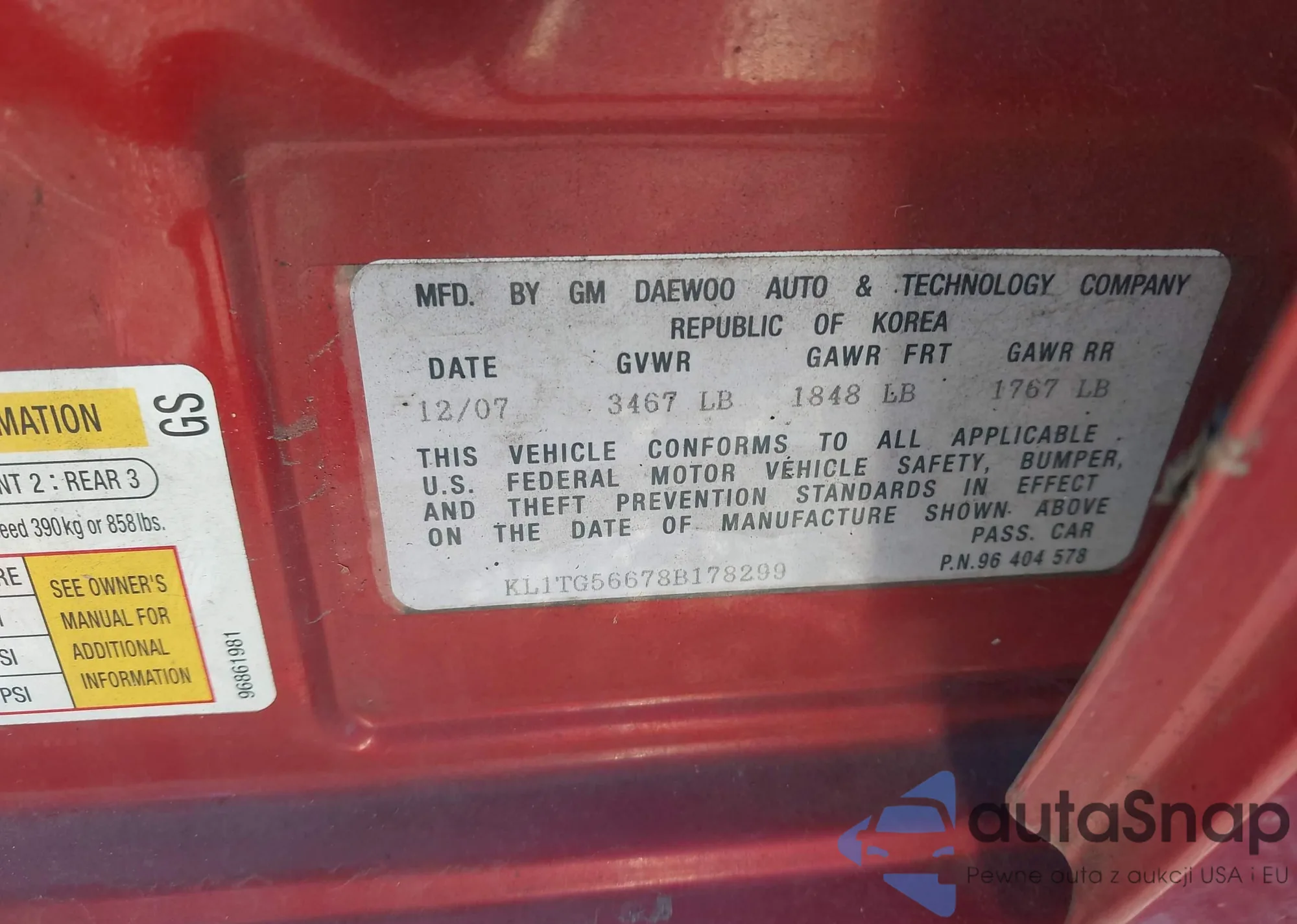 LOT: 44074961 VIN: KL1TG56678B178299