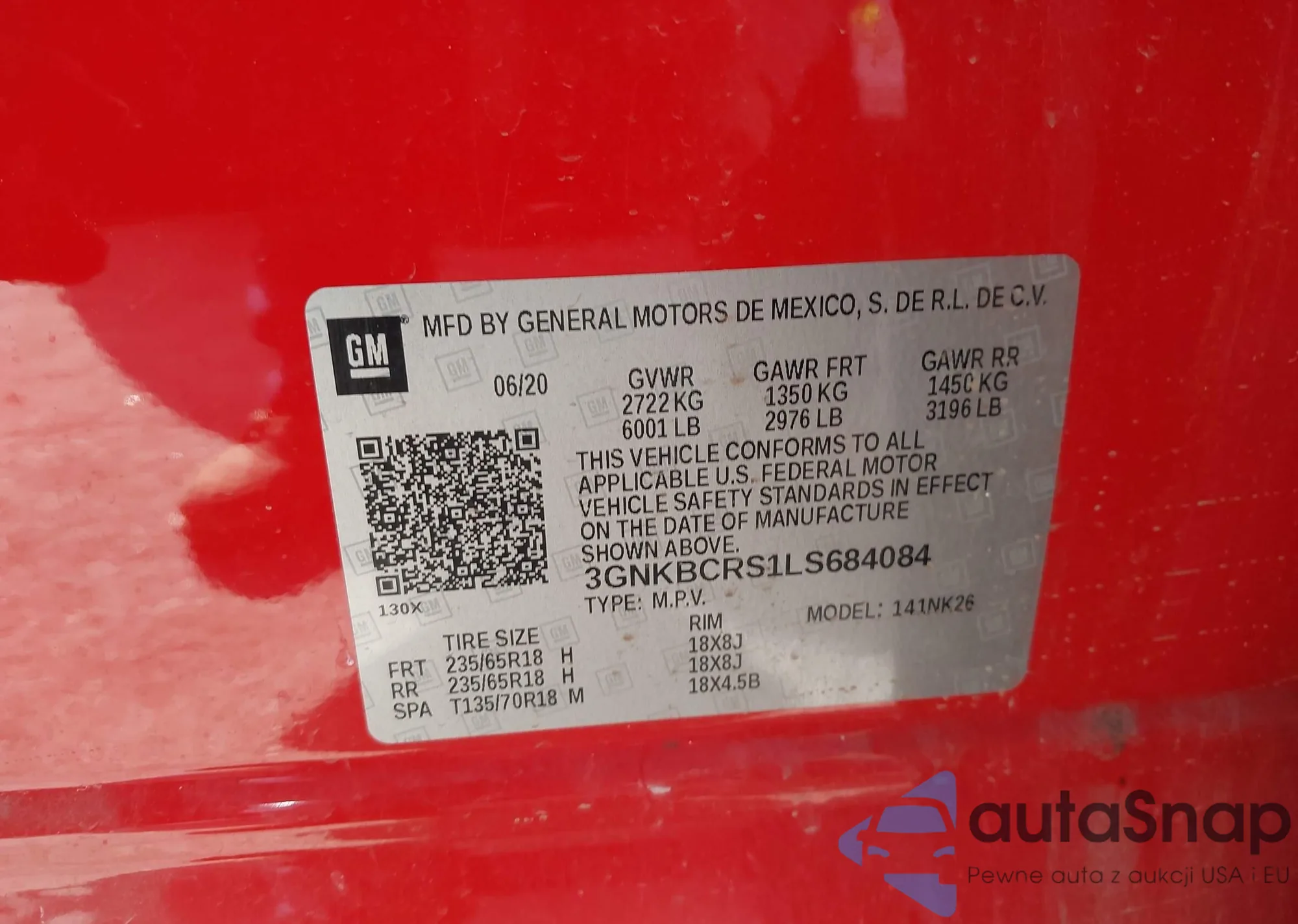 LOT: 43886648 VIN: 3GNKBCRS1LS684084