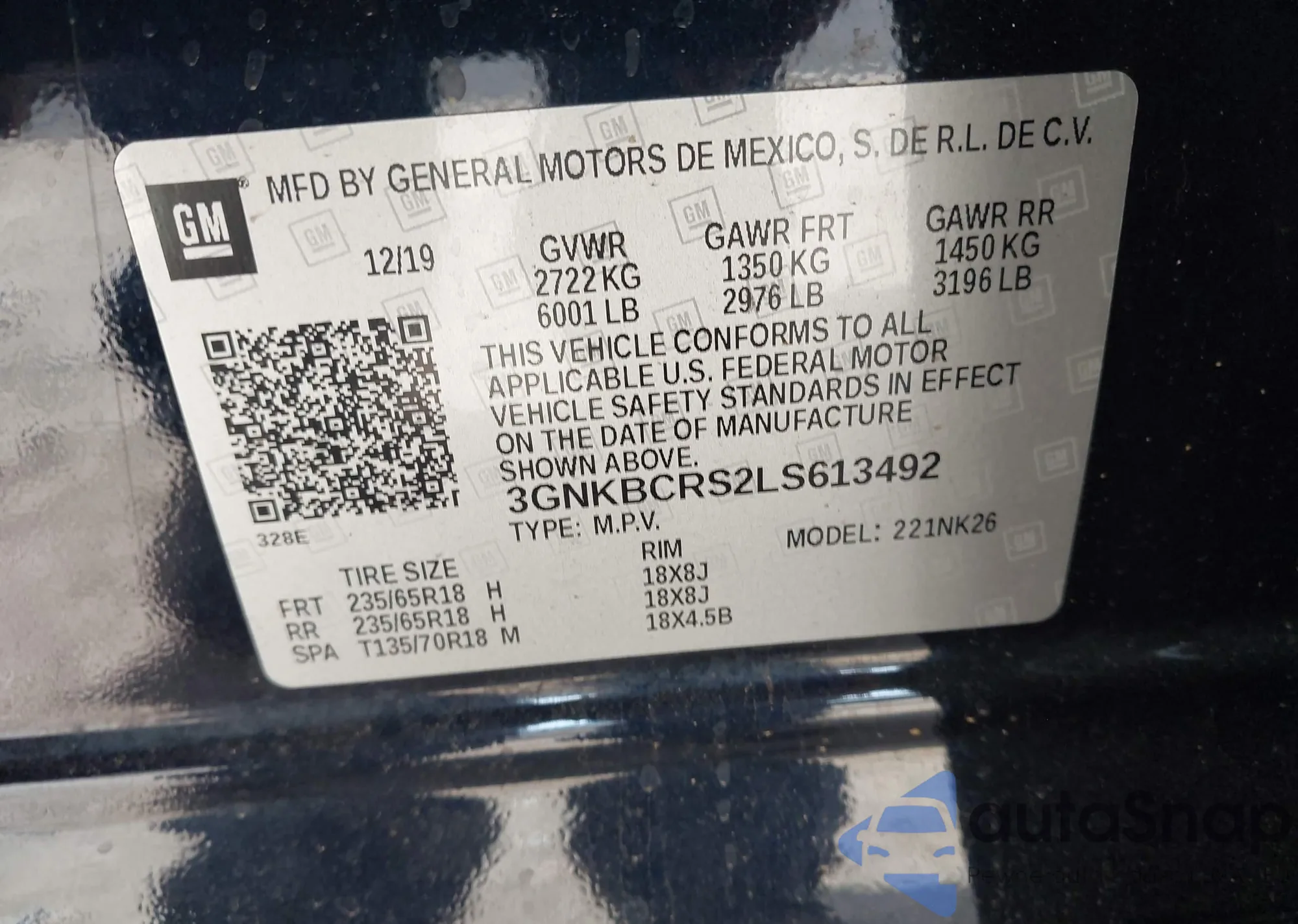 • VIN 3GNKBCRS2LS613492