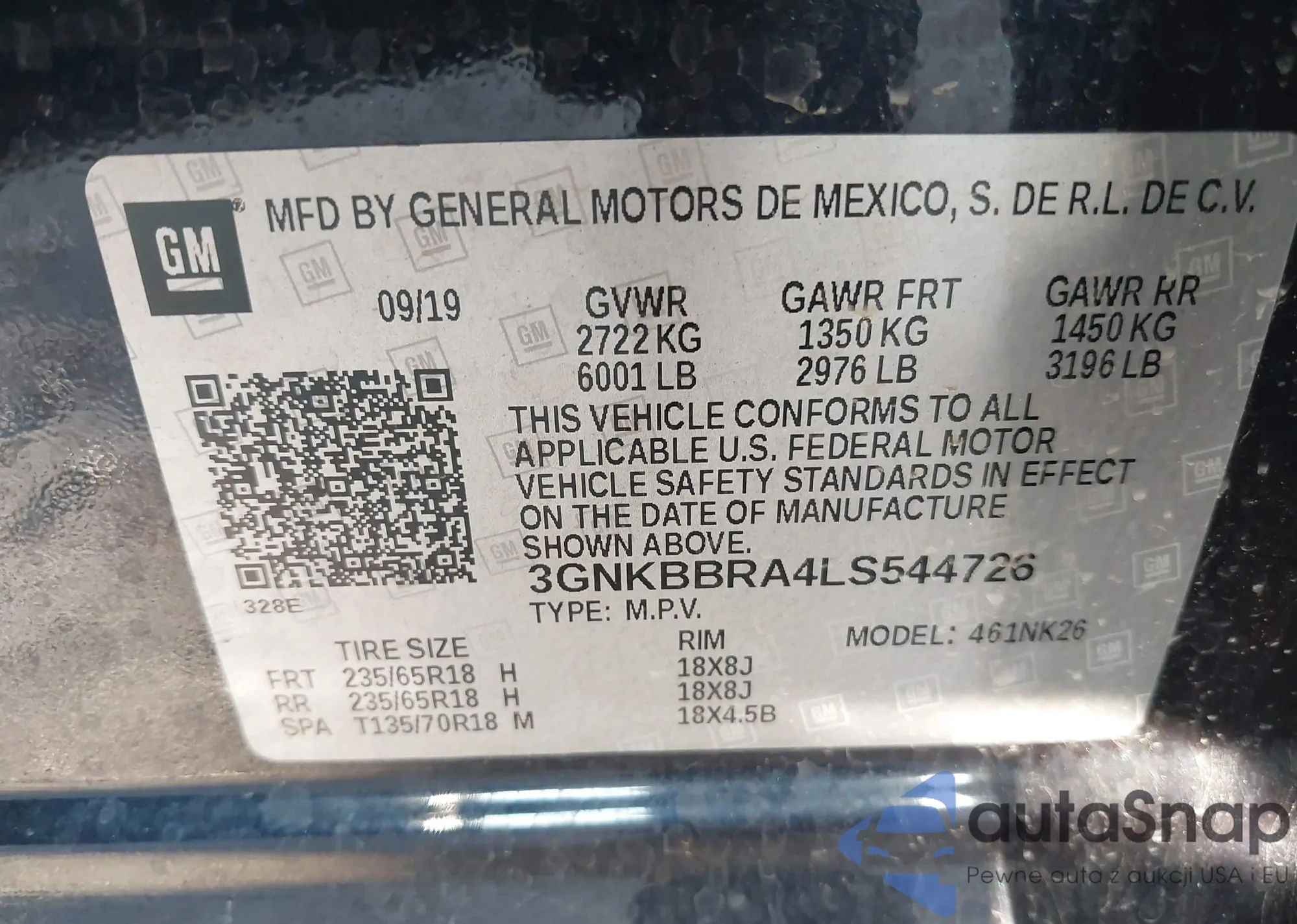 • VIN 3GNKBBRA4LS544726