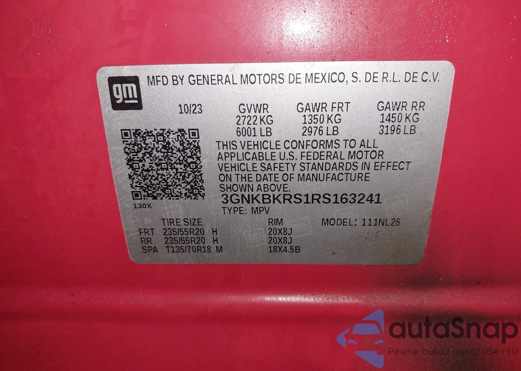 • VIN 3GNKBKRS1RS163241