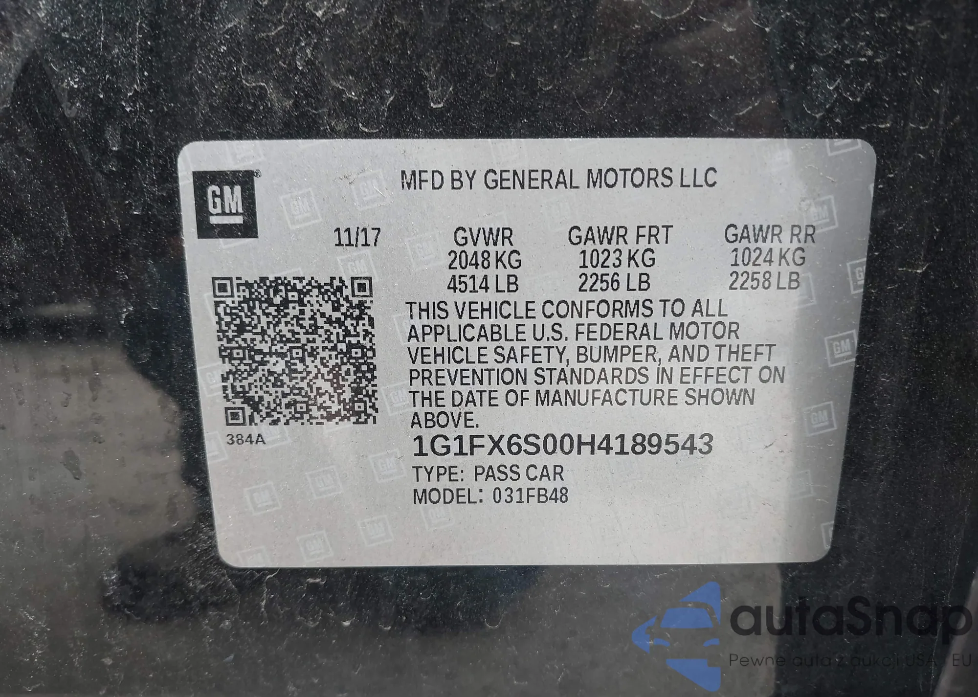 • VIN 1G1FX6S00H4189543