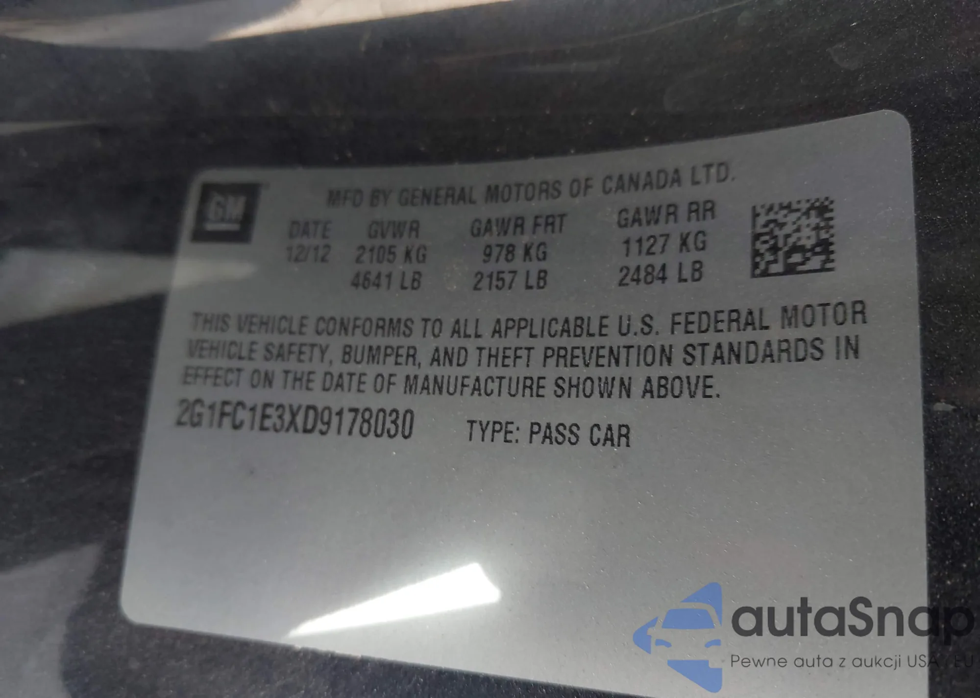 • VIN 2G1FC1E3XD9178030