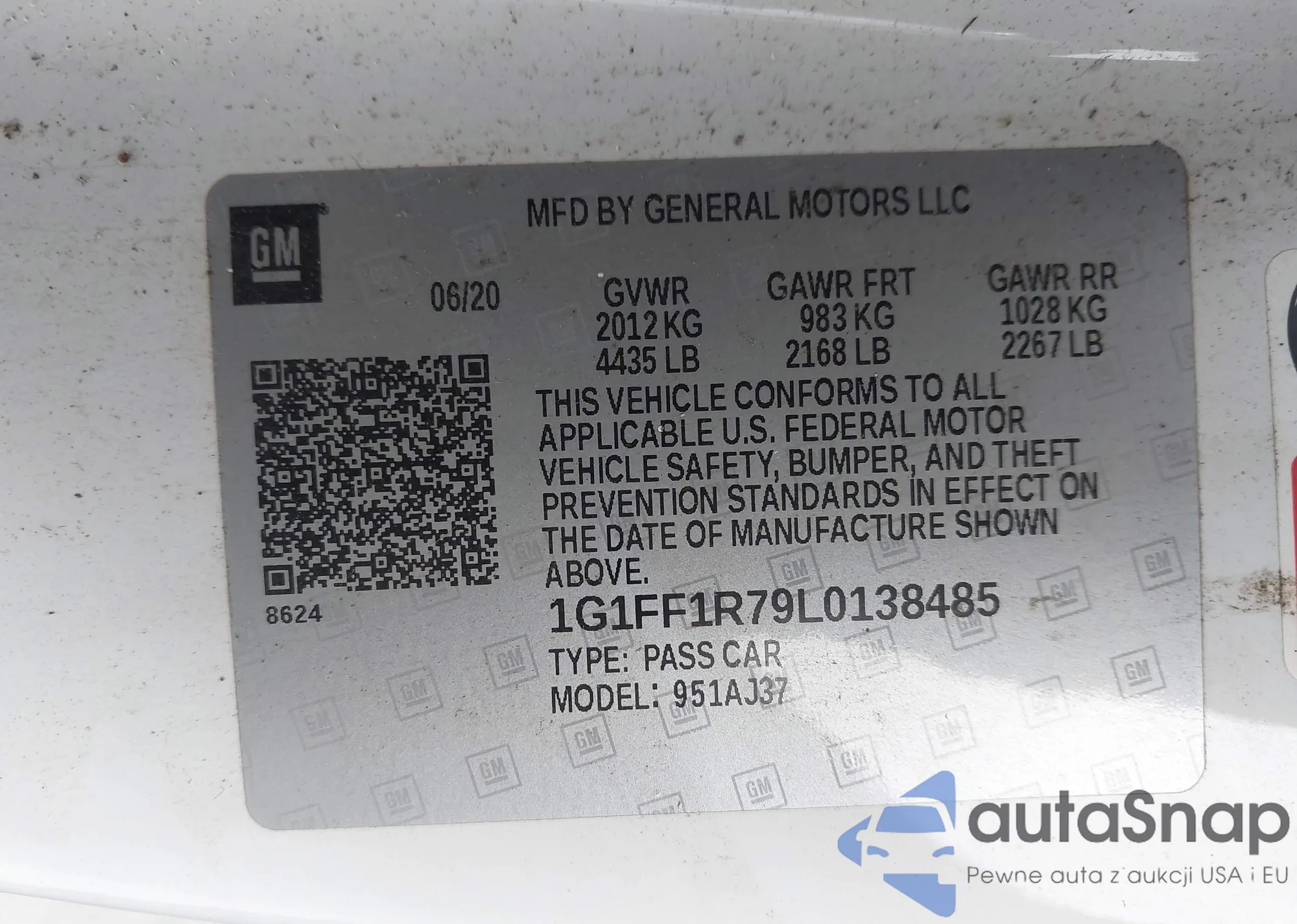 LOT: 44330058 VIN: 1G1FF1R79L0138485