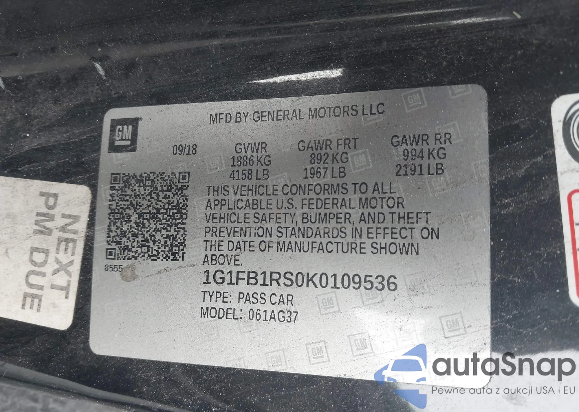 • VIN 1G1FB1RS0K0109536