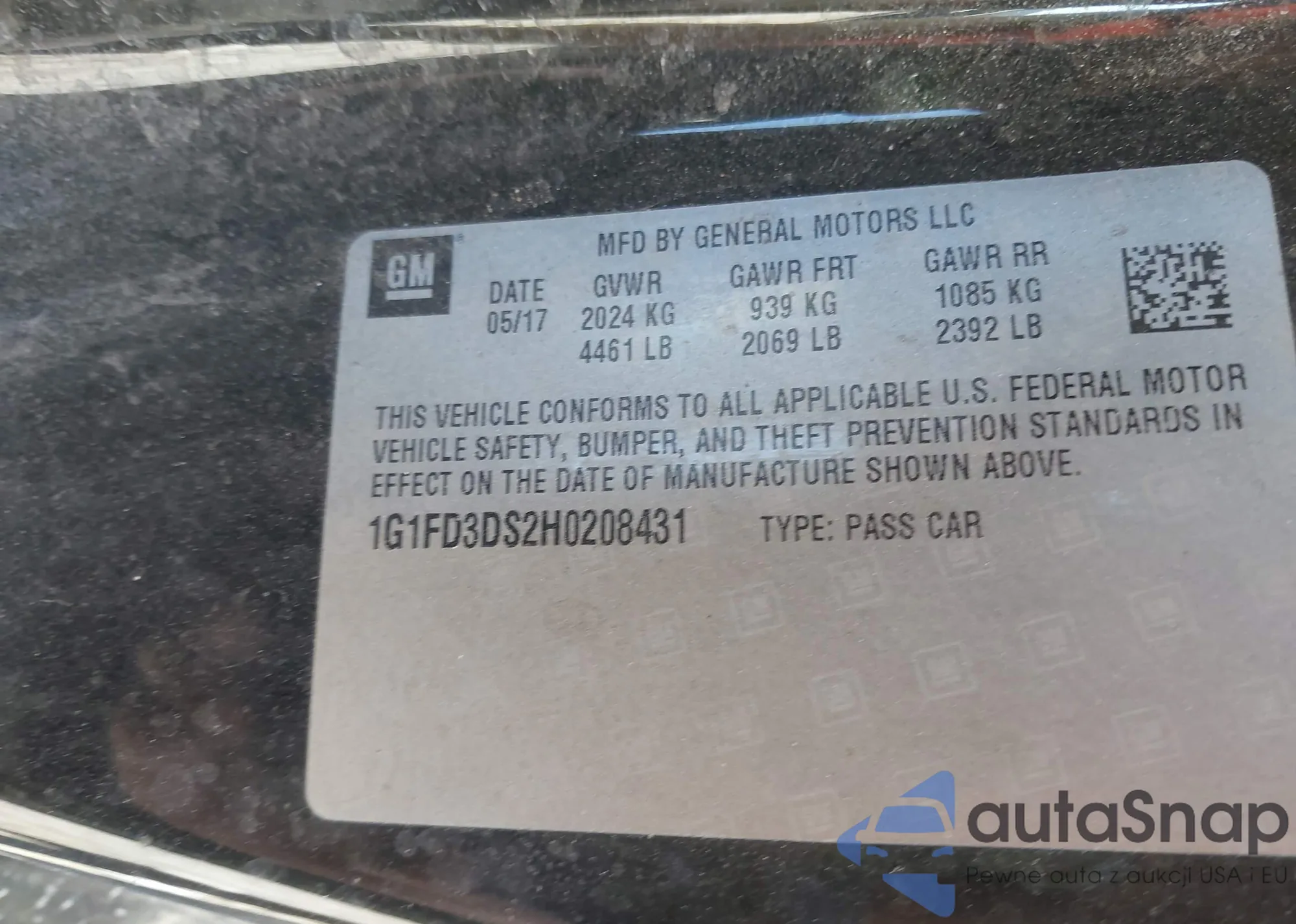• VIN 1G1FD3DS2H0208431