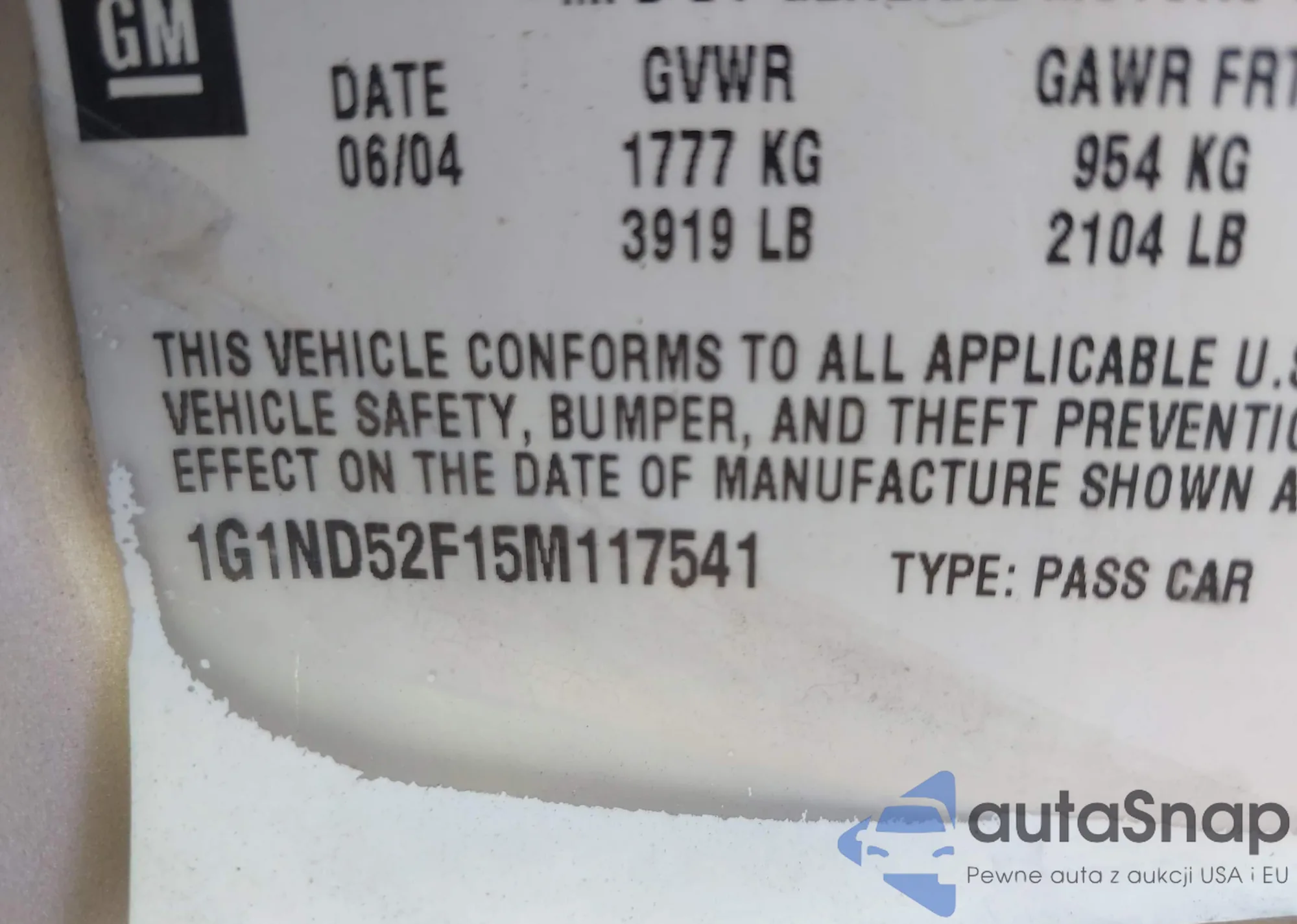 LOT: 27149542 VIN: 1G1ND52F84M600961