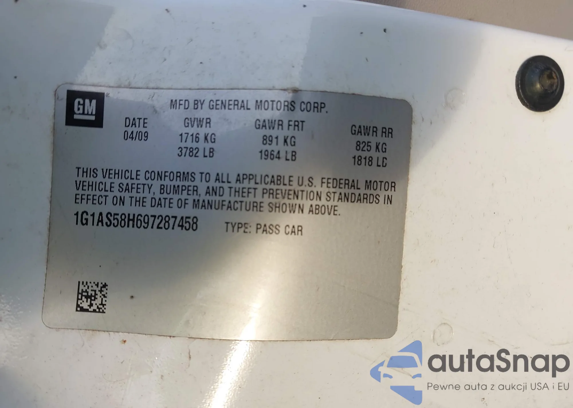 • VIN 1G1AS58H697287458