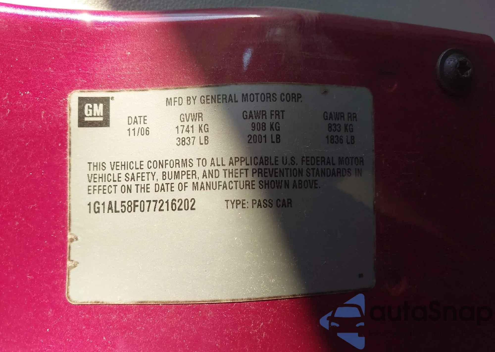 • VIN 1G1AL58F077216202