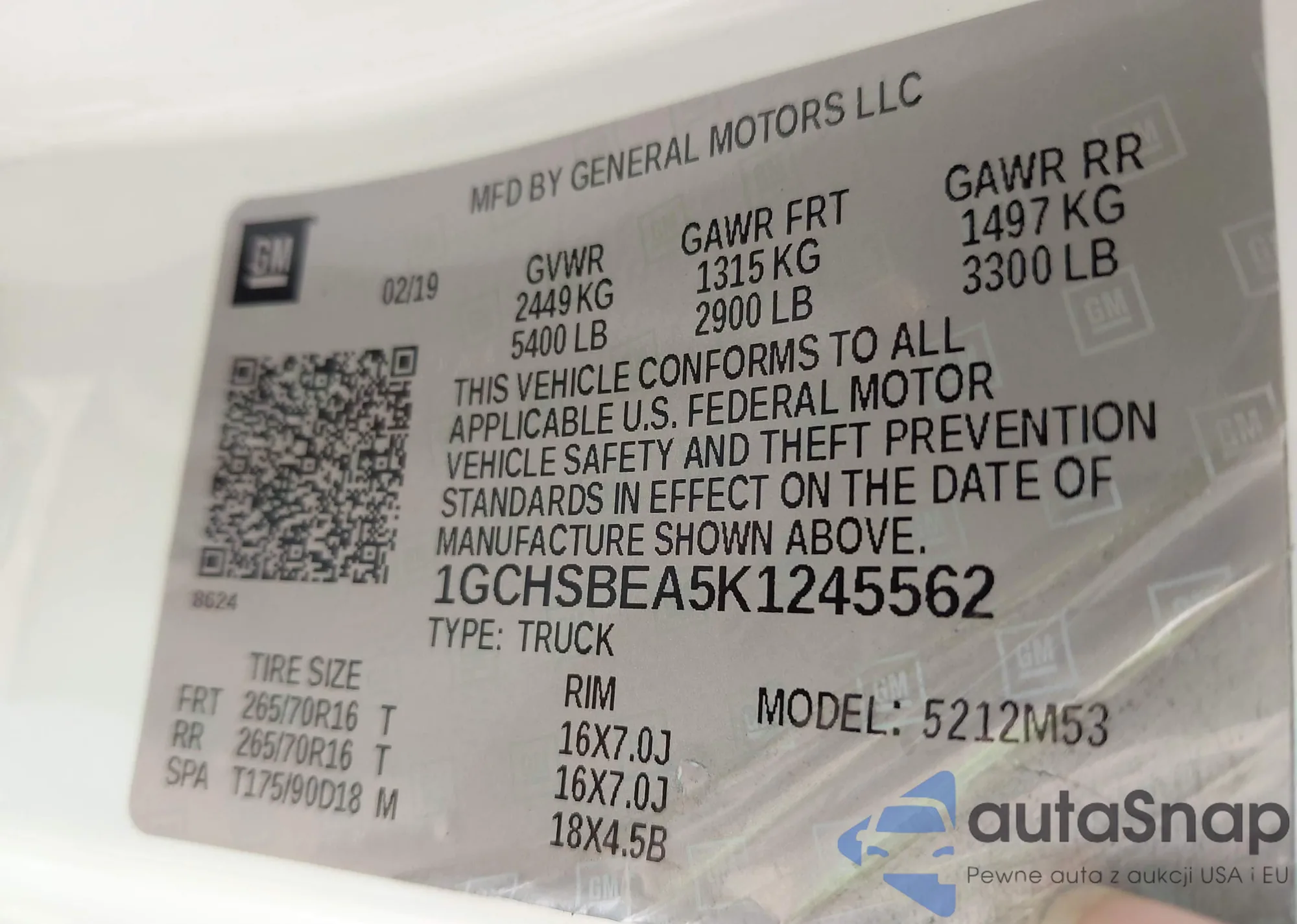 LOT: 41712945 VIN: 1GCGSCEN7K1117134