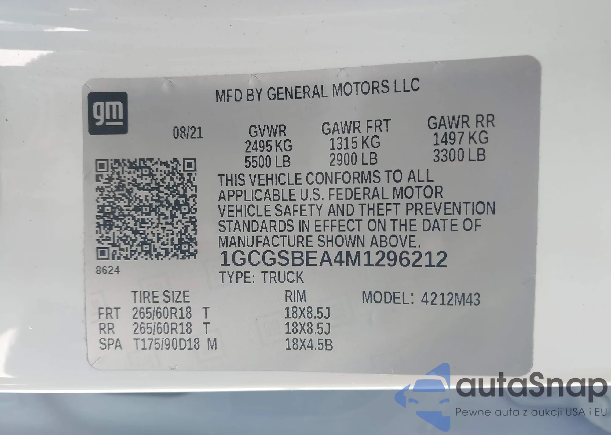 LOT: 41965311 VIN: 1GCGSBEA4M1296212