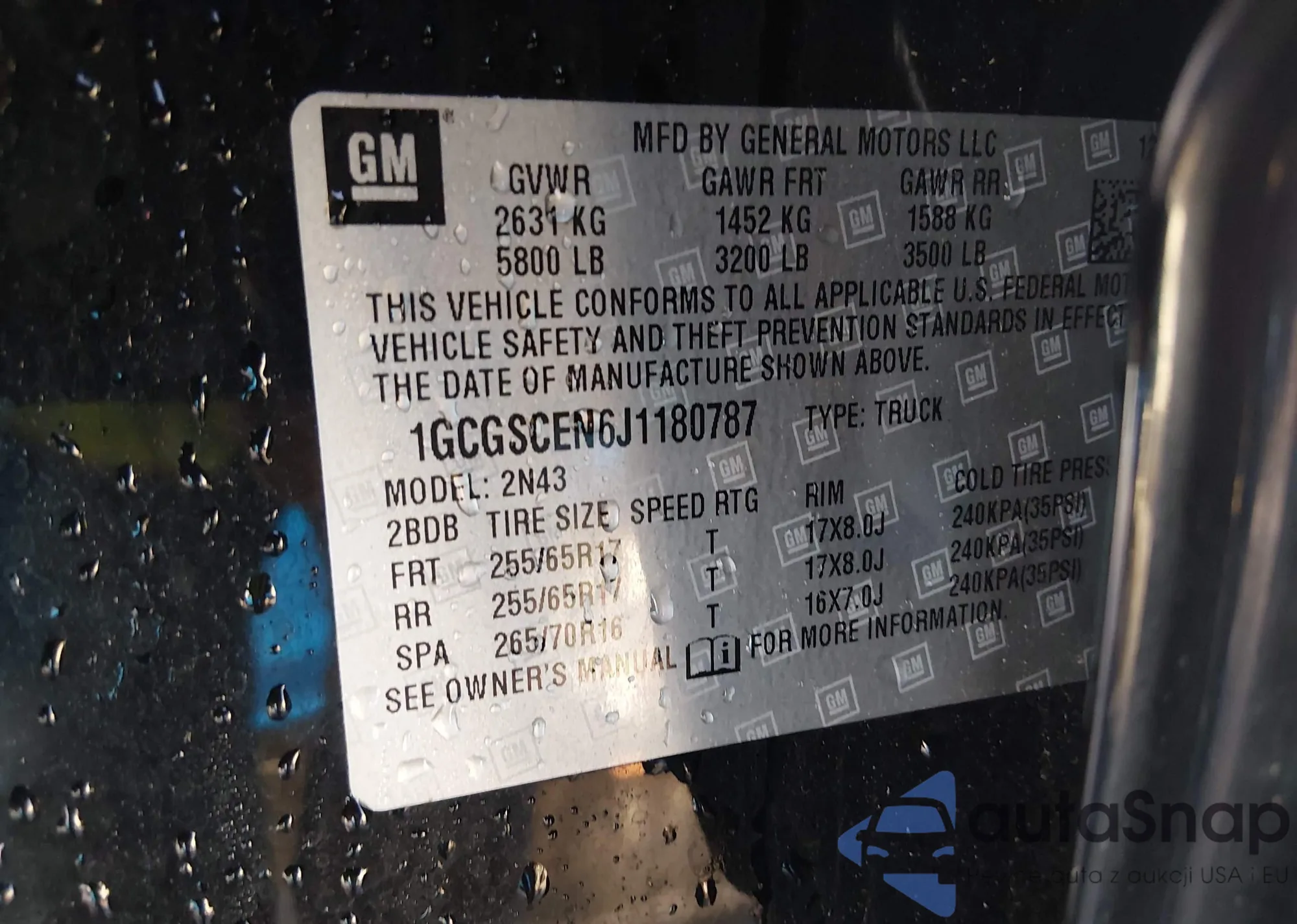 LOT: 44118914 VIN: 1GCGSCEN6J1180787