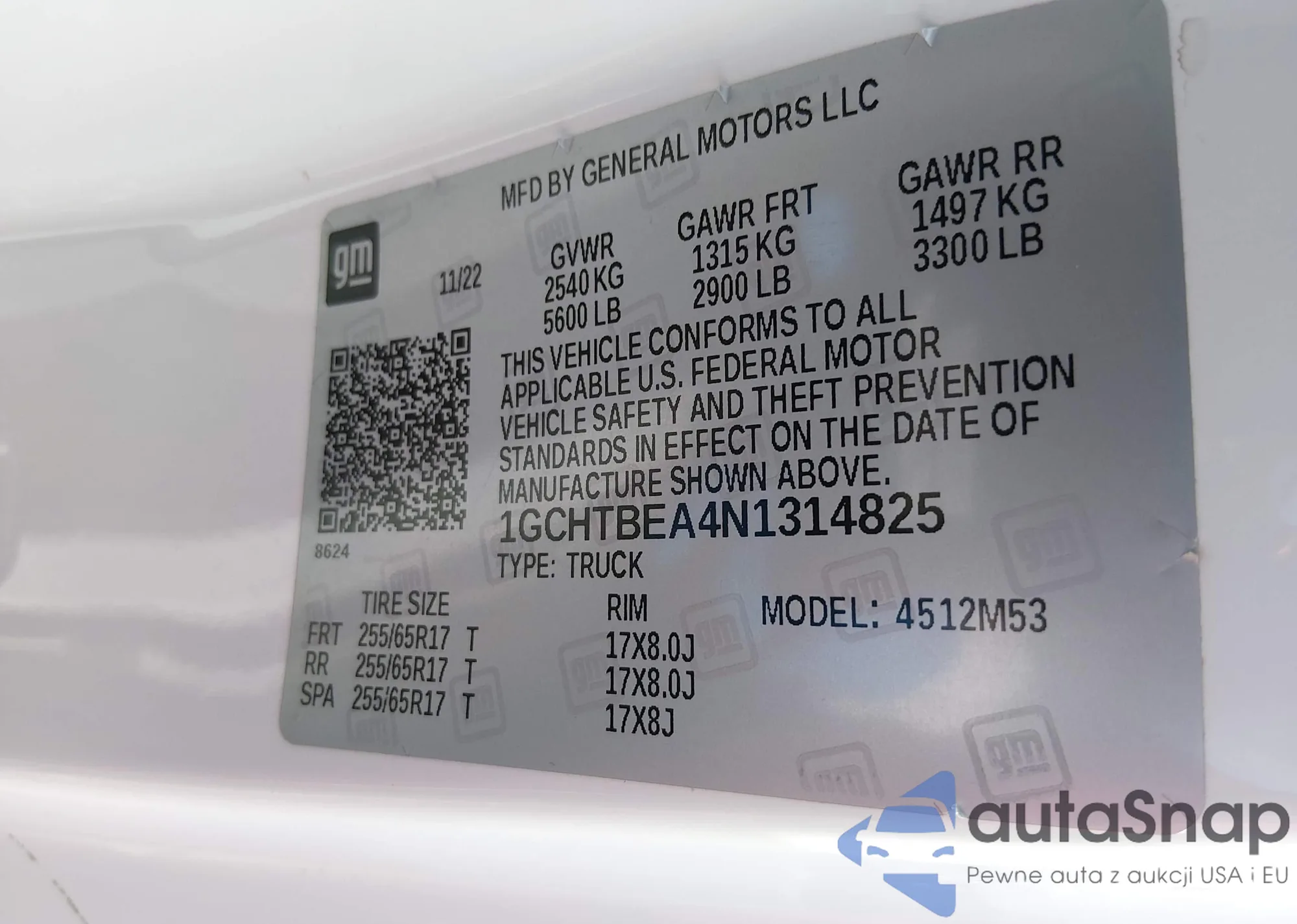 LOT: 44256229 VIN: 1GCGSDEN1N1198402