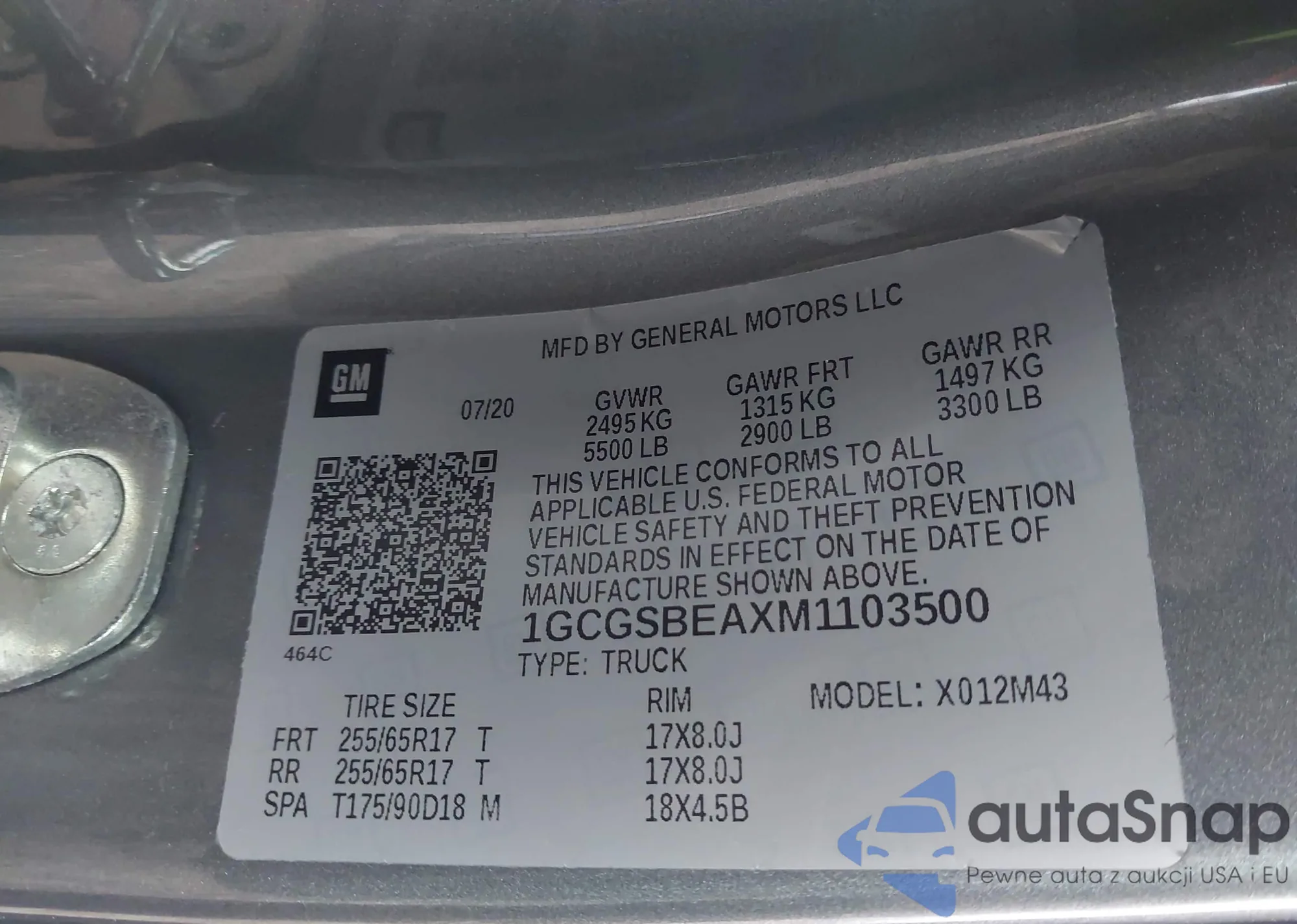 • VIN 1GCGSBEAXM1103500