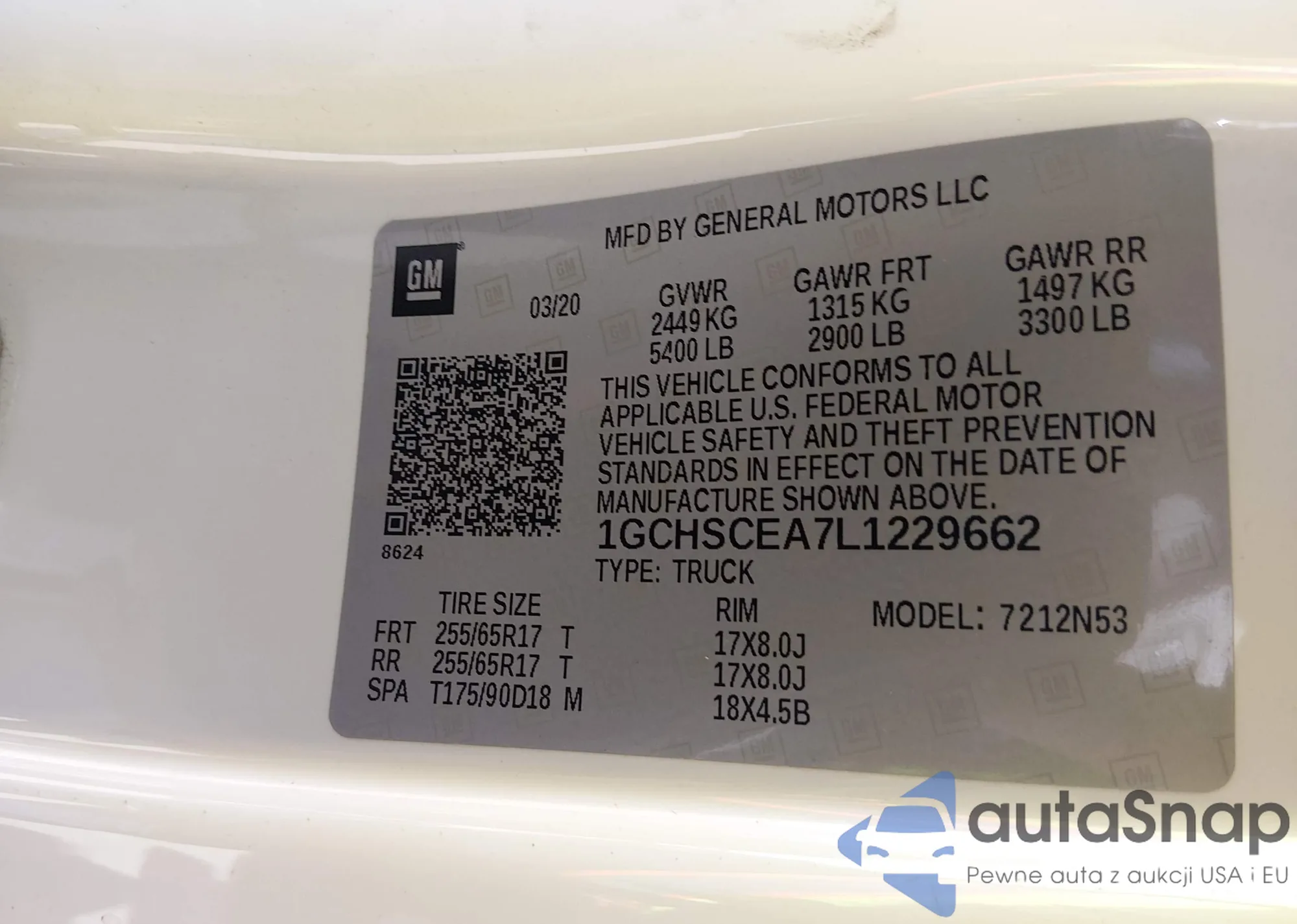 LOT: 44374946 VIN: 1GCGTBEN7L1226525