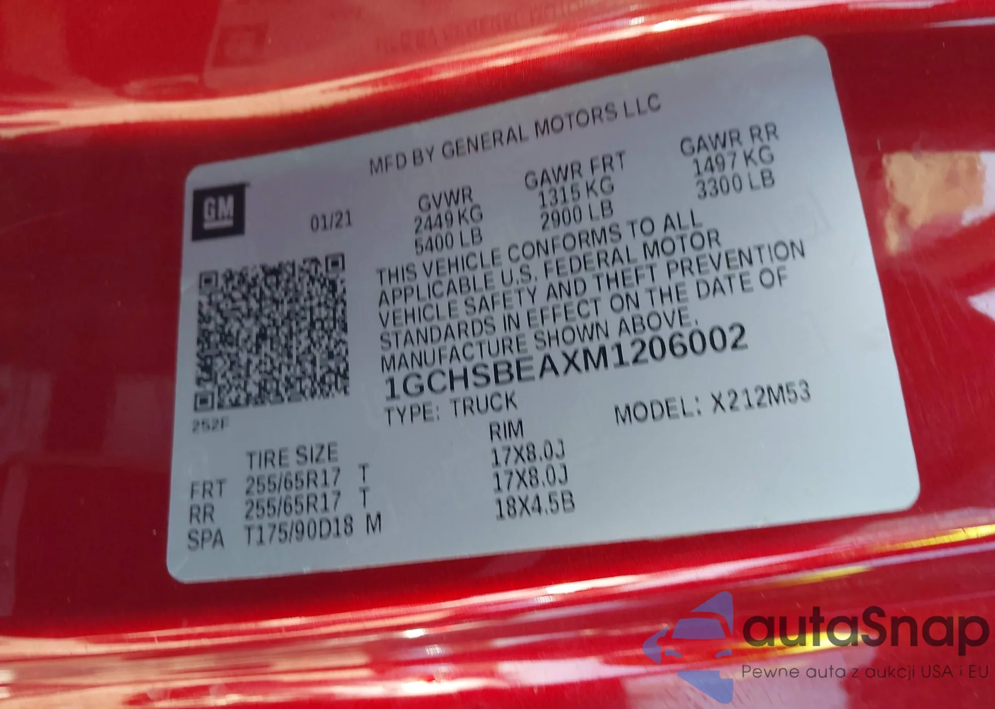 LOT: 44344576 VIN: 1GCHSBEAXM1206002