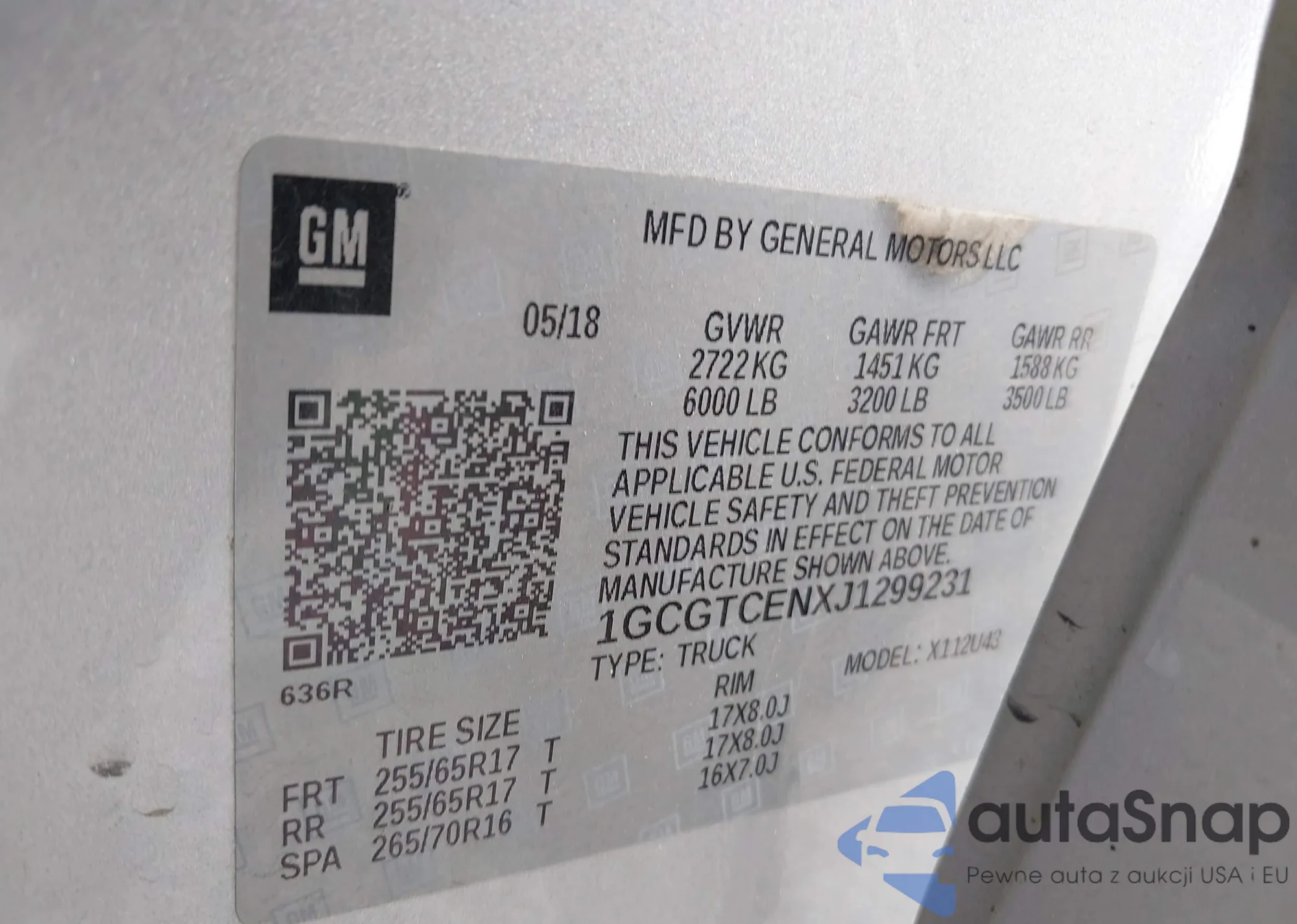 LOT: 44383589 VIN: 1GCGTCENXJ1299231