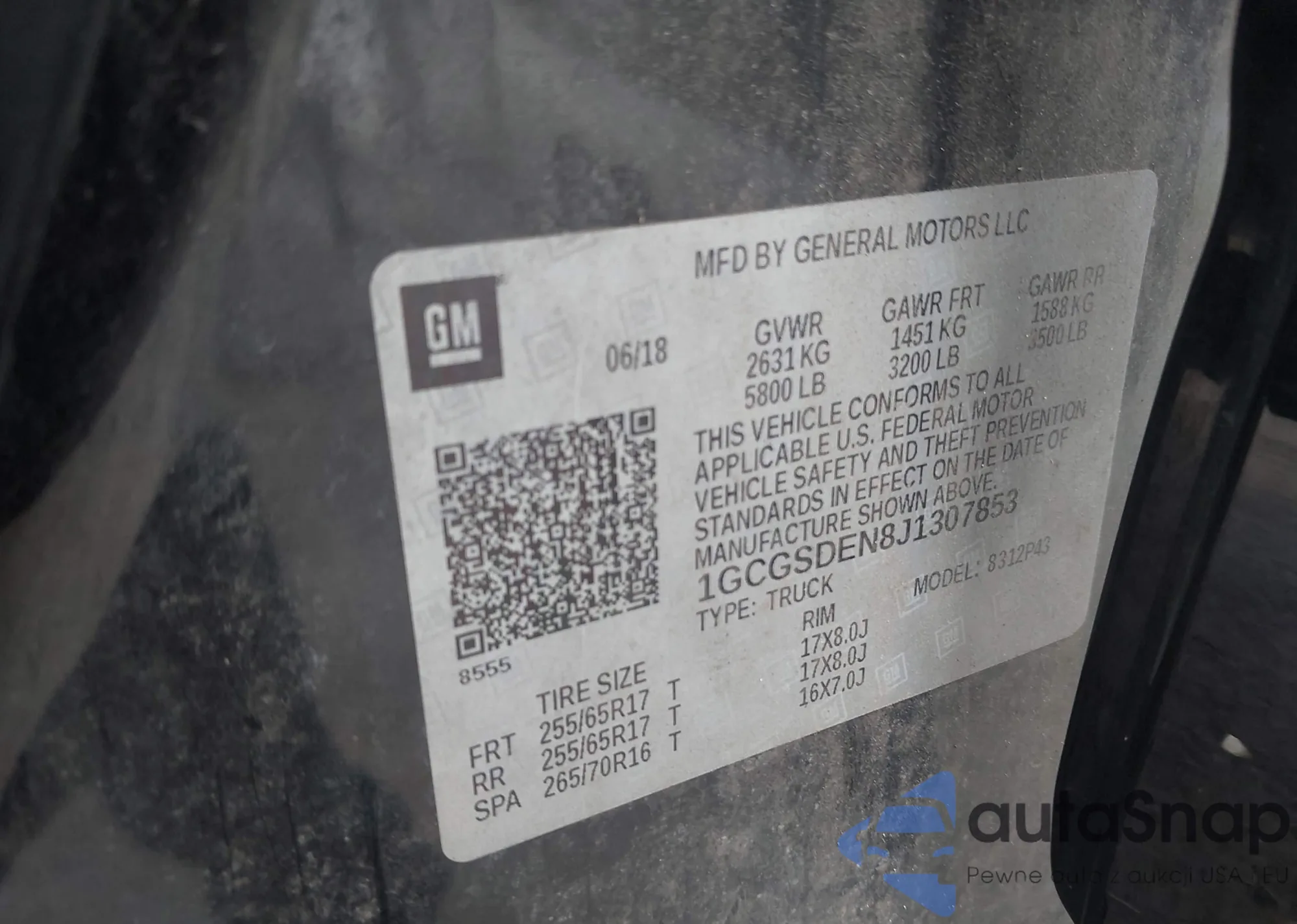 • VIN 1GCGSDEN8J1307853