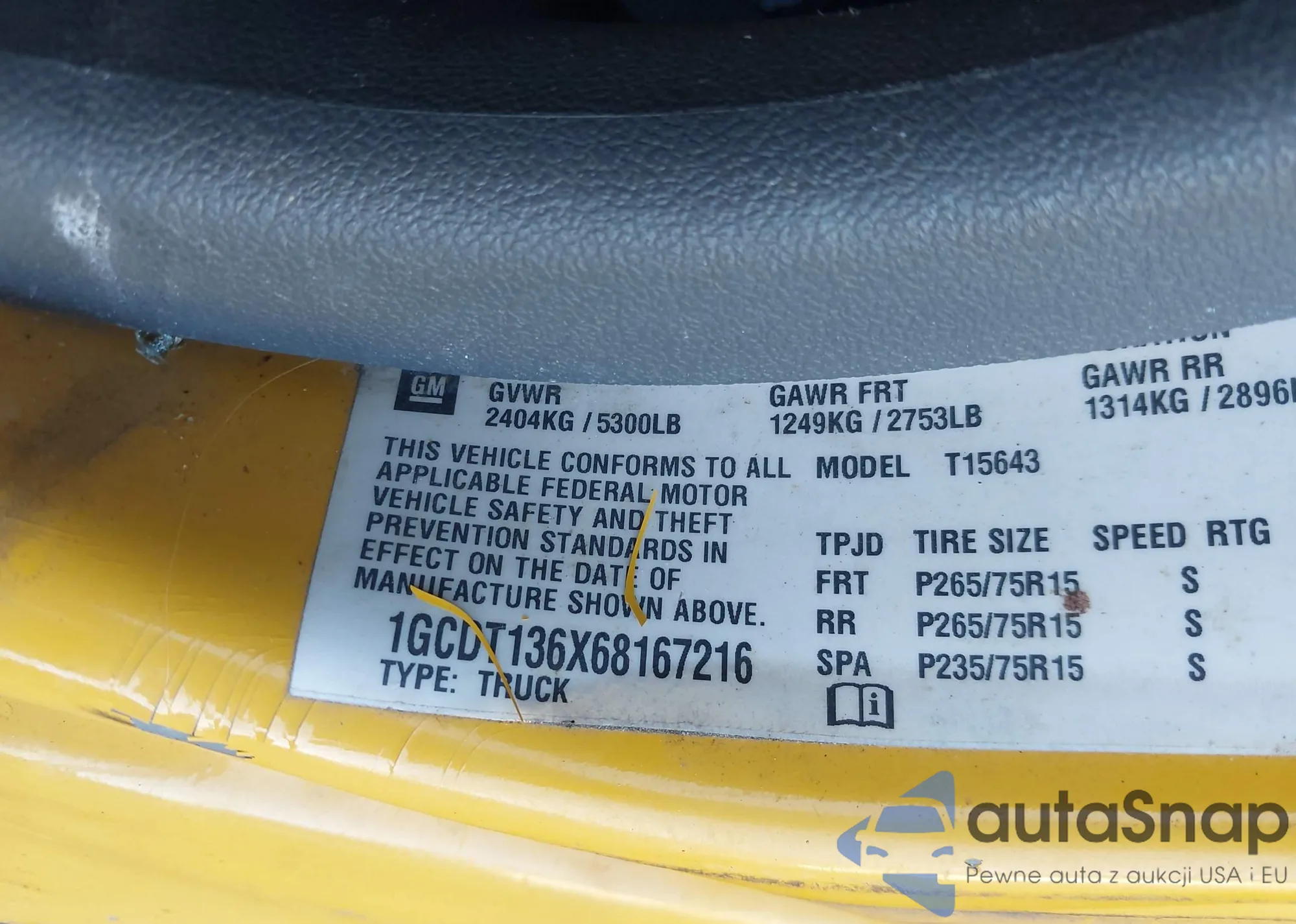 LOT: 43788764 VIN: 1GCDT136968177753
