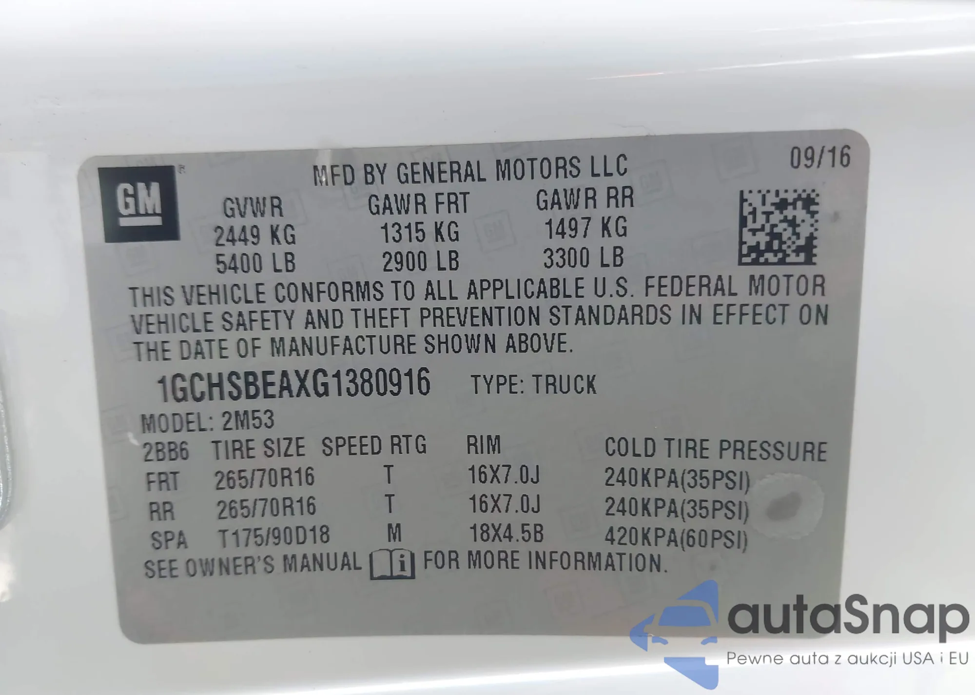 • VIN 1GCHSBEAXG1380916