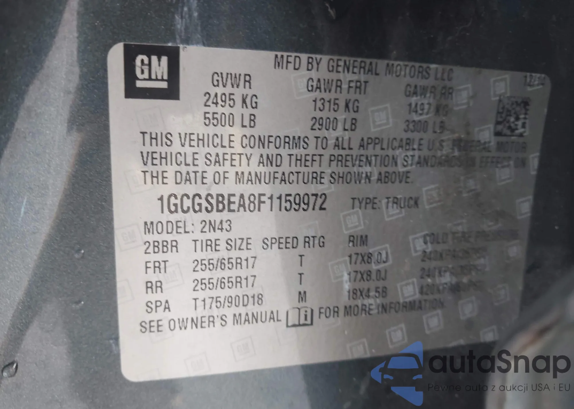 • VIN 1GCGSBEA8F1159972