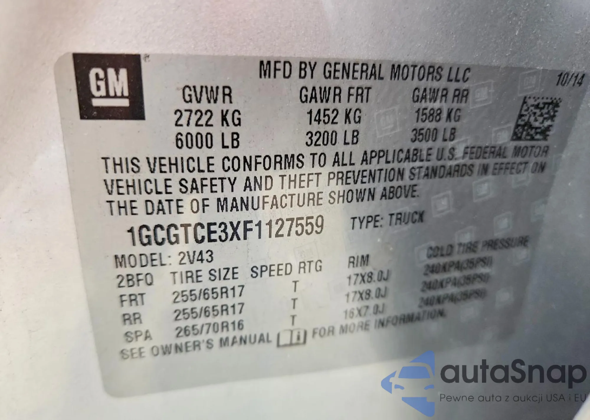 LOT: 77422685 VIN: 1GCGTCE3XF1127559