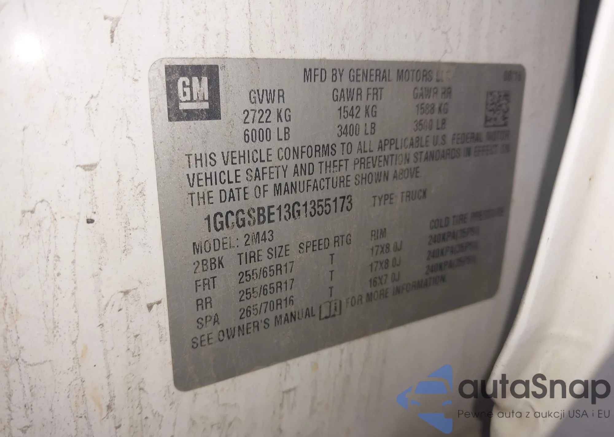 LOT: 44014527 VIN: 1GCGSBE13G1355173